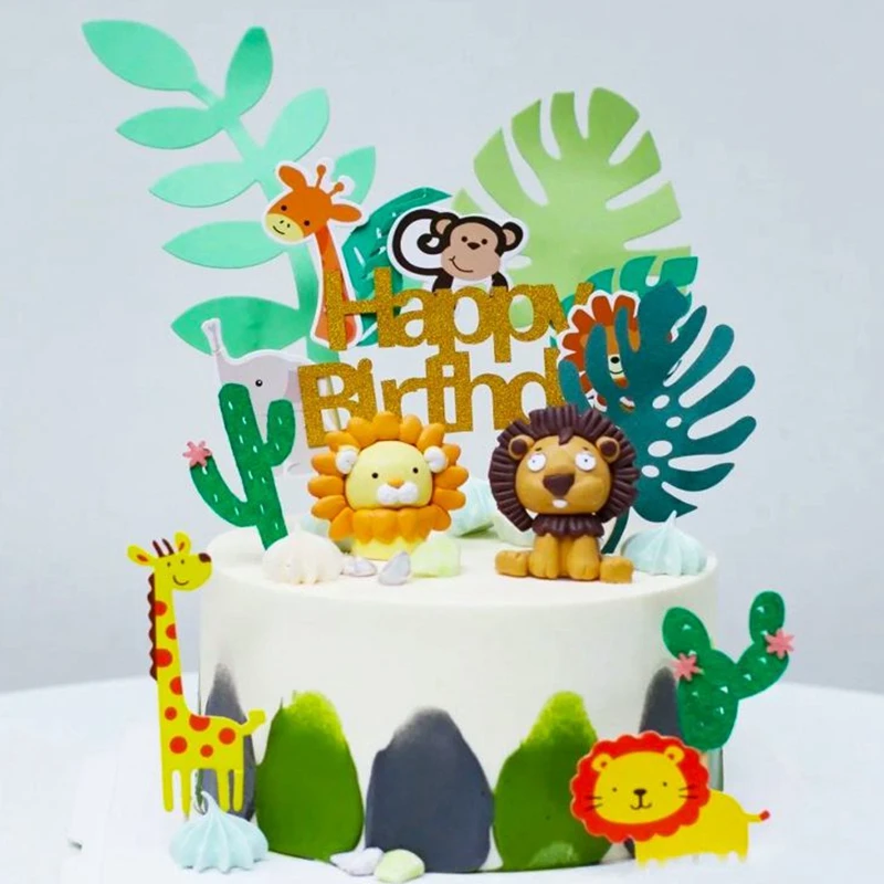 Топпер для торта, животное, украшение для дня рождения, детский праздник для будущей мамы, дикий первый день рождения, подарок, зоопарк, искусственные драгоценности в джунглях