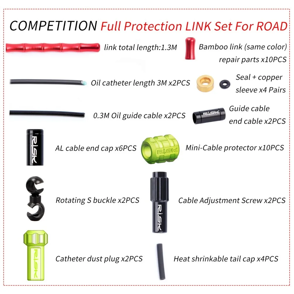 Набор звеньев для горного велосипеда комплектация: 1x1700 мм соединительный кабель Запасные части для ремонта 10x 2x3 м масляный катетер 6x AL Концевая крышка кабеля 10x мини-кабель протектор 2x вращающаяся s-образная пряжка 2x винт регулировки кабеля 2х Пылезащитная заглушка катетера 4x термоусадочная Хвостовая крышка Флуоресцентный Набор дорожных велосипедных звеньев для упаковки: 1x1300 соединительный кабель Запасные части для ремонта 10x 2x3 м масляный катетер 4x уплотнение + Медный рукав 2x0,3 м масляный руководство кабель 2x направляющий кабель 6x AL Концевая крышка кабеля 10x мини-кабель протектор 2x вращающаяся s-образная пряжка 2x винт регулировки кабеля 2х Пылезащитная заглушка катетера 4x термоусадочная Хвостовая крышка