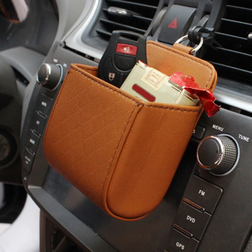 Контейнер для мусора с вентиляционным отверстием для авто, сумка для хранения в автомобиле, органайзер для приборной панели с вентиляционным отверстием, полиуретановый держатель для очков, телефона, сумка для отделки