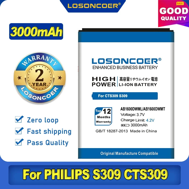 100% оригинал LOSONCOER 3000 мАч AB1600DWML AB1600DWMT батарея для PHILIPS S309 CTS309