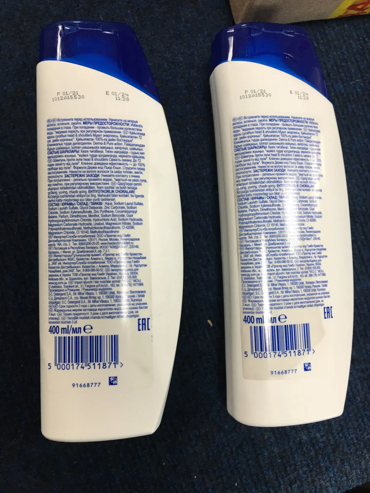 Быстрая отправка. Пришел в картонном боксе. Следов скотча на упаковках нет. Дата производства: 01/21. Ничего не пролилось, но: странная вмятина на одном флаконе сбоку, словно примят. И самое главное - под задней этикеткой следы грязи, словно этикетку переклеили,но не похоже. Возможно это выхлоп от дизельных фур. Такое уже видала на бытовой технике под плёнкой. Пока не вскрывала, взяла про запас. Надеюсь оригинал.