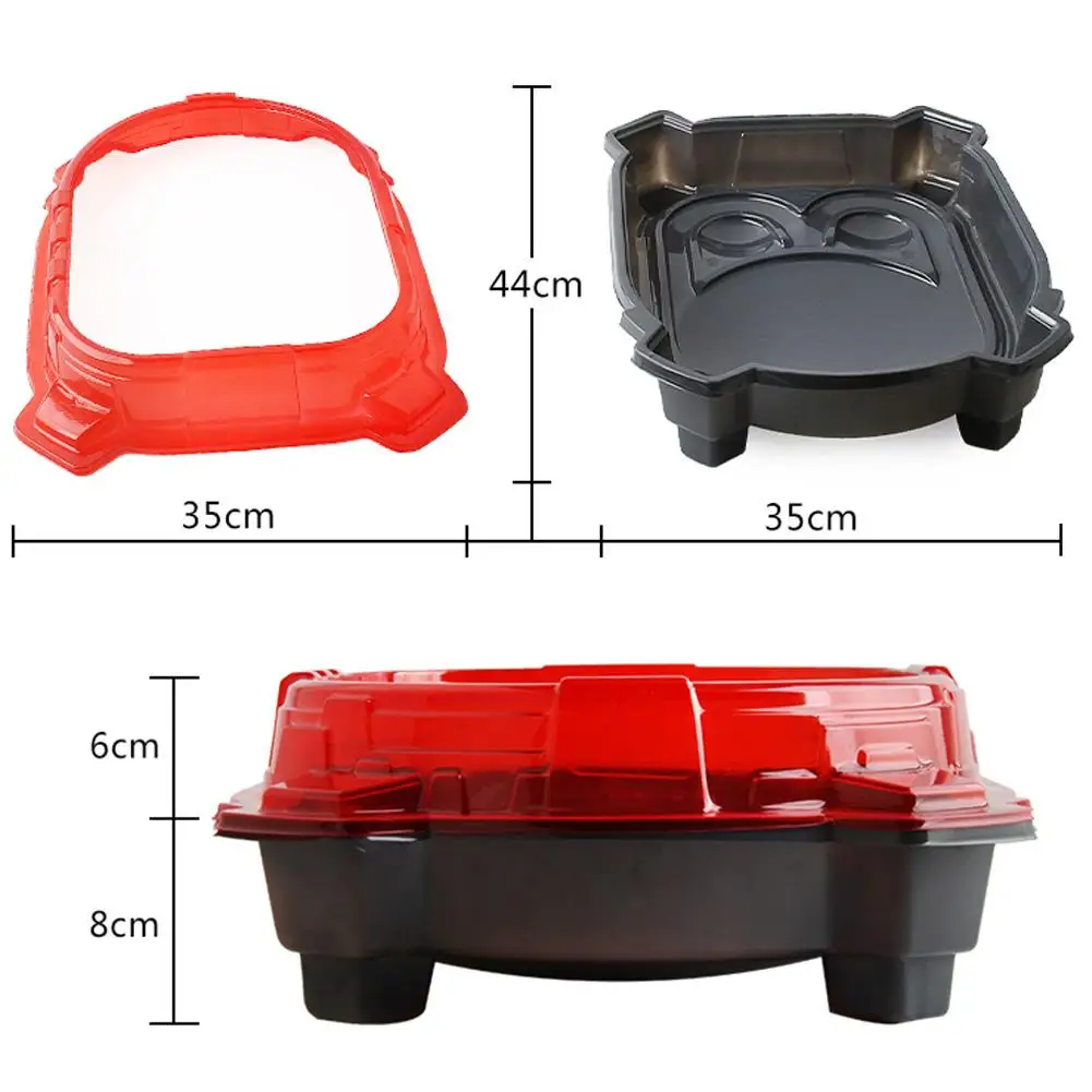 Спиннинг Топы игра гироскоп диск Арена сражения стадион сцена дляБейблэйдBurst Evolution BeystadiumХарактеристика:Боевая Арена изготовлена из твердого и нетоксичного пластика, безопасна и удобна в переноске, и подходит для детей, чтобы играть в боевые игры.Классный и яркий цвет арены идеально подходит для долива. Это интересный подарок на день рождения или праздник для детей.Выпустите эпические сражения с расширенными зонами поверхности.Используйте эту захватывающую игрушку, чтобы соревноваться с друзьями.Спецификация:Товар: Гироскопический дискМатериал: пластикРазмер: шасси 44x35x 8 см/17,32x13,78x3,15 '', крышка 44x35x 6 см/17.32x13.78x2.36''Цвет: красный + черныйПримечание:1. Из-за различных настроек монитора и светильник эффект, фактический цвет элемента может быть s светильник ly отличается от цвета, представленного на снимках. Спасибо!2. Возможны отклонения в 1-3 см вследствие измерений вручную.