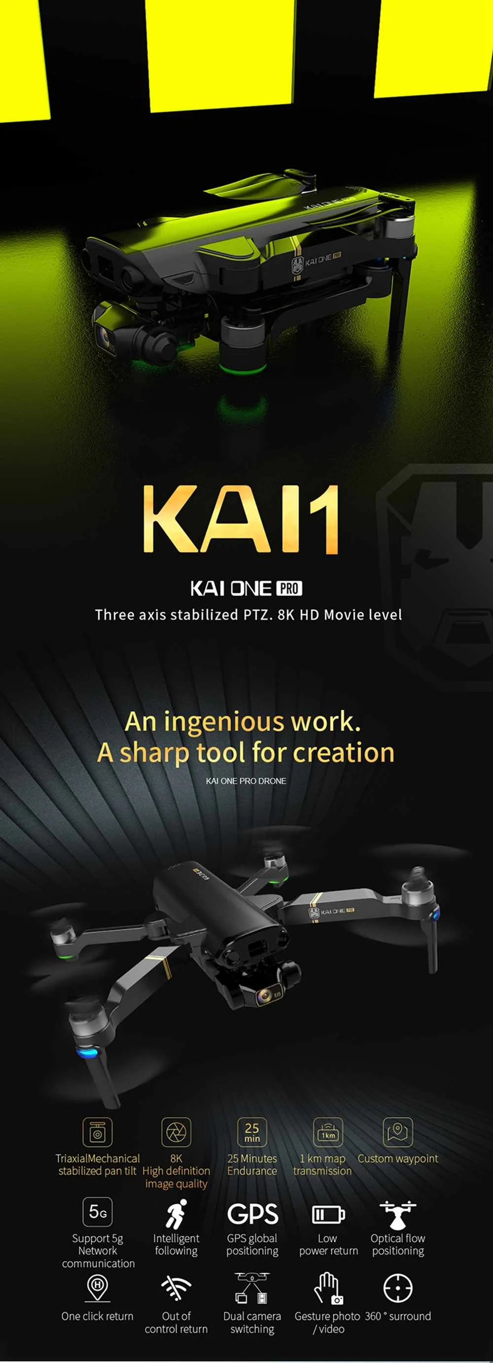 1. Продвинутый5G Wi-Fi и 2-осевая стабилизированная камера 4K: Модернизированная камера с объективом 120 ° FOV (поле зрения) обеспечивает панорамный обзор для записи ваших незабываемых моментов. Передача Wi-Fi 5G обеспечивает высокое качество видео в реальном времени, идеал для селфи Оснащен камерами 4K, снимает Потрясающие снимки и видео с неба, со стабильным стабилизатором, Дрон записывает безвибрационные кадры.2.GPSВспомогательный полет: предоставляет точные детали позиционирования вашего дрона. Встроенная функция возврата к дому (RTH) для более безопасной летания, Дрон автоматически вернется к дому именно тогда, когда его батарея разряжена или слабый сигнал при вылетах за пределы диапазона, никогда не беспокойтесь о потере дрона.3.22 минуты времени и бесщеточный двигатель: Интеллектуальная батарея большой емкости 2200 мАч обеспечивает время полета до 20 минут. Сильная мощность двигателя.4.Режим Follow MeИ режим орбиты: Дрон будет автоматически следить за вами и фиксировать вас, куда бы вы ни двигались. Держите вас в кадре постоянно, легче делать сложные снимки, обеспечивает полет без помощи рук и Селфи Режим орбиты позволяет дрону летать по кругу вокруг заданной точки и убедитесь, что вы получите панорамные фотографии и видео. Используйте r-определенный план полета: откройте приложение для дрона, используйте план полета у вас под рукой, вертолет будет автоматически пилотировать по заданному пути.5.Жест фото/видео и простое управление: Вы нарушите старый способ фотосъемки и найдёте свежую вещь, сделав жесты для записи вашего момента. Удержание высоты, взлет одной кнопкой и возврат GPS домой для упрощения работы, вам не придется беспокоиться о ориентации, а с простым нажатием кнопки ваш Дрон поднимется на высоту, идеально подходит для начинающих.