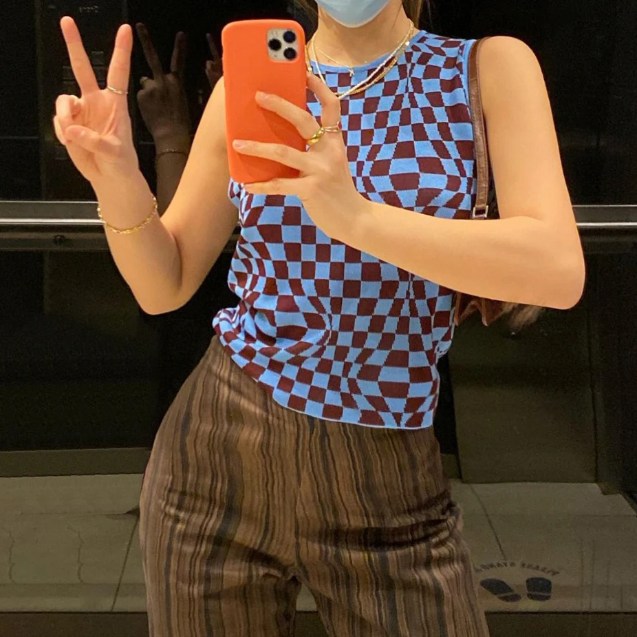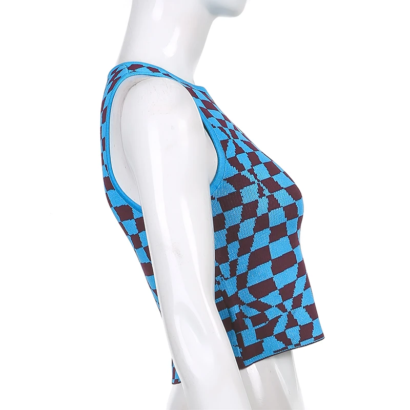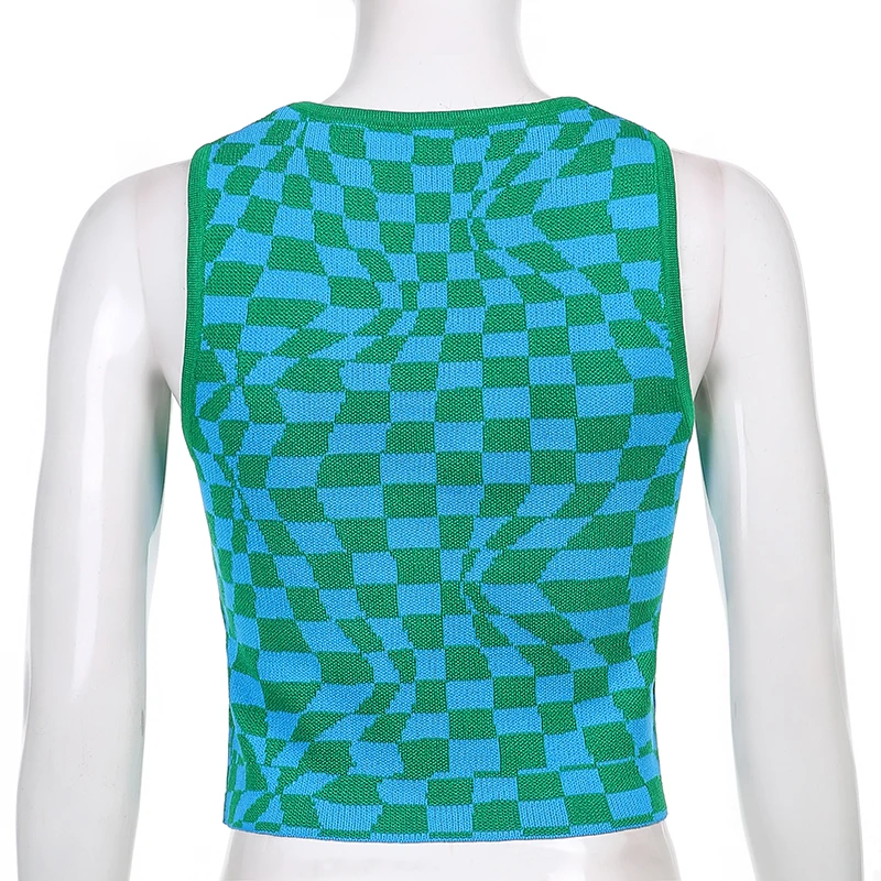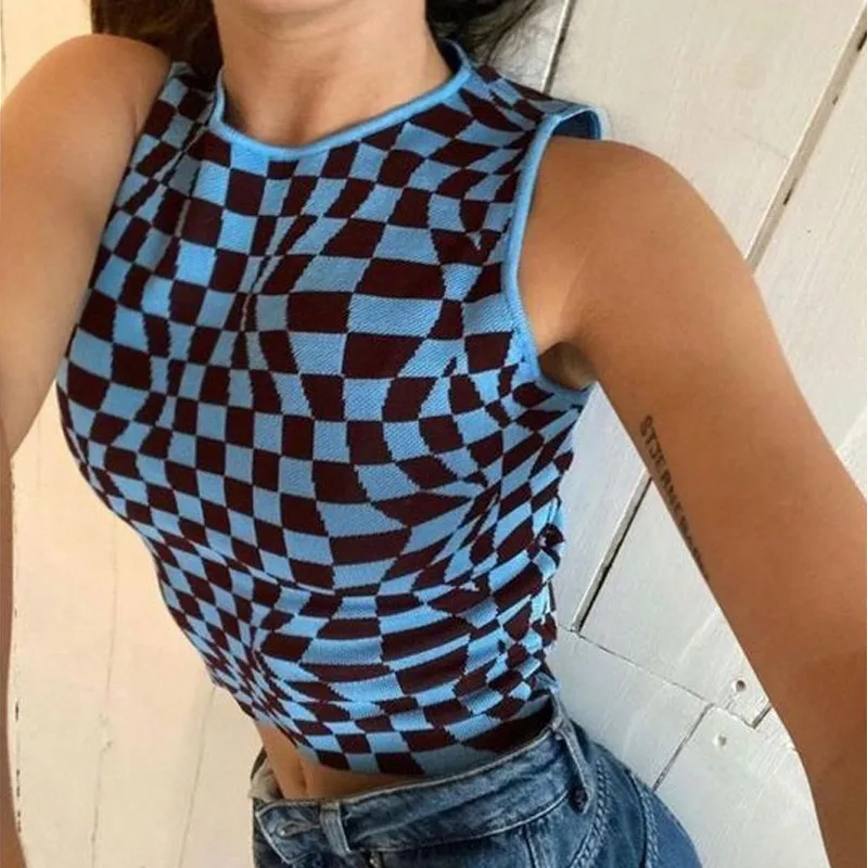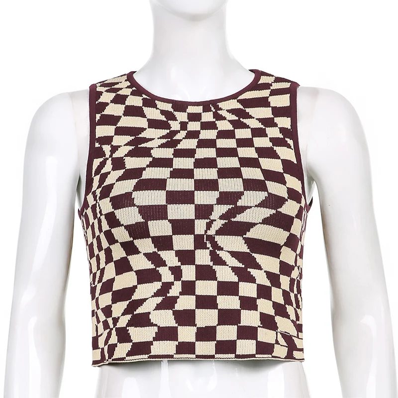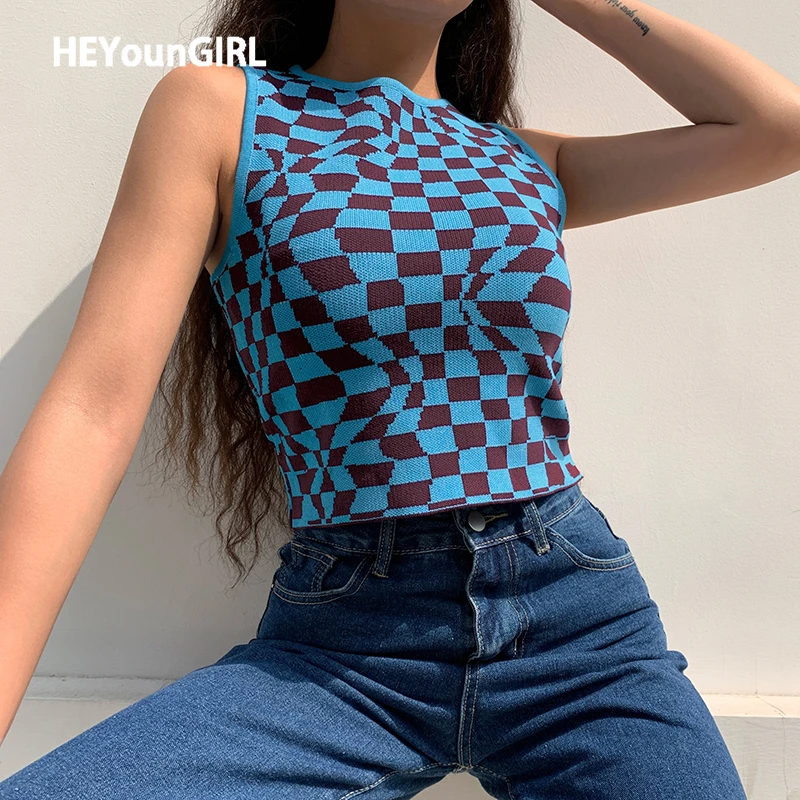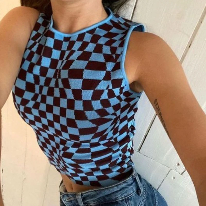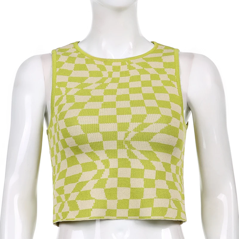 Кроп-Топ женский клетчатый трикотажный без рукавов, в Корейском стиле