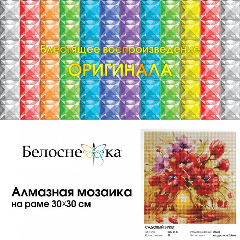Садовый букет Алмазная мозаика на подрамнике 30х30 см. Белоснежка. 205-ST-S