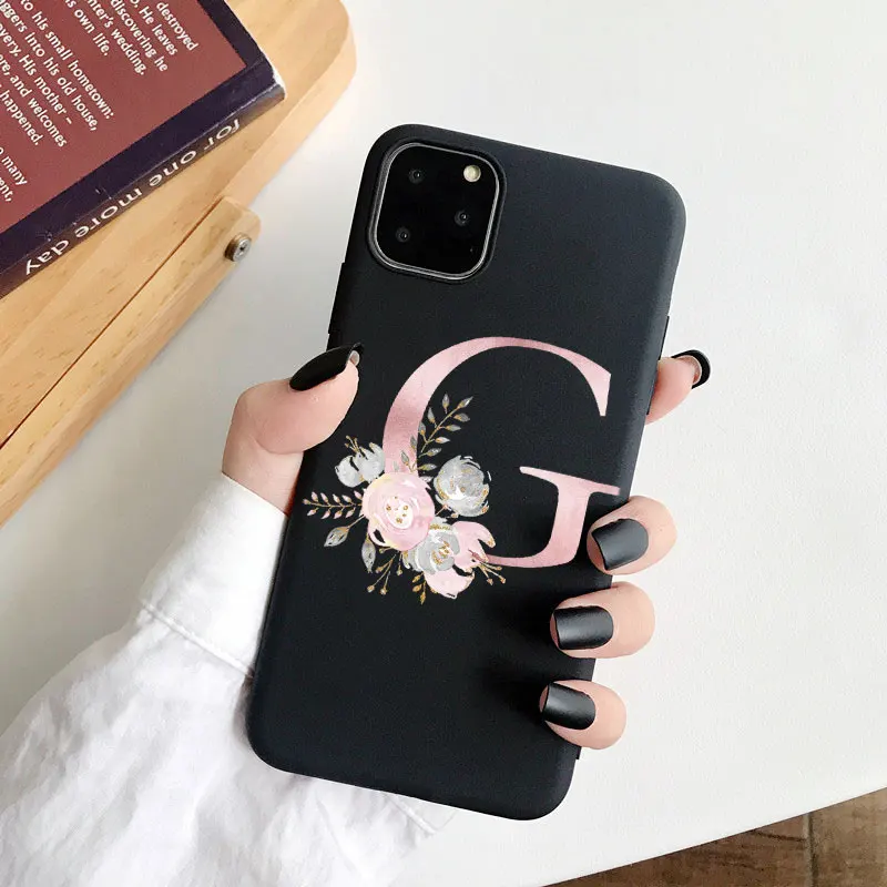 Чехол с буквами алфавита для Samsung Galaxy A21S A51 A71 A50 A70 A10 A20 A20E A30 A30S A50S A31 A40, чехол с черными цветами