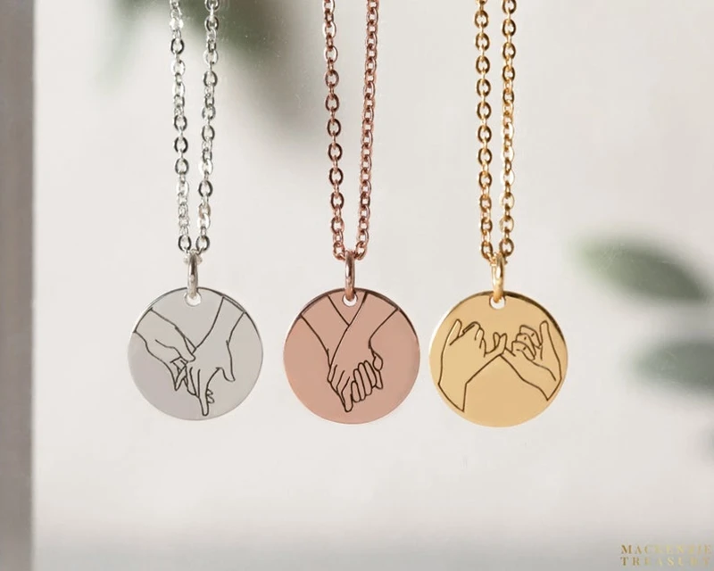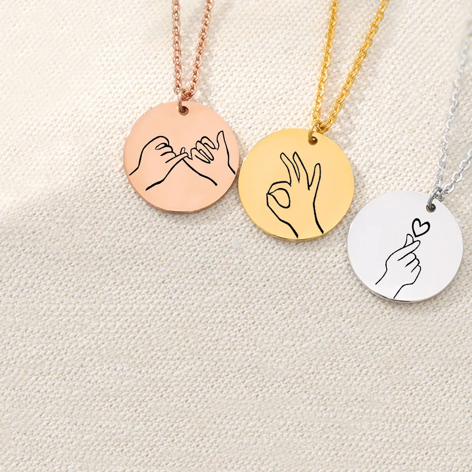 Индивидуальные персональные Выгравированные жесты Ручной знак язык ожерелья Простой нержавеющей стали геометрический круглый кулон ожерелье