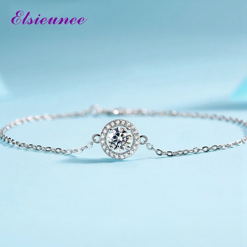 ELSIEUNEE, цельное серебро 925 пробы, ювелирный браслет, 0.5ct, D цвет, Moissanite, браслеты для девочек, розовое золото, цвет, свадебные ювелирные украшения, оптовая продажа