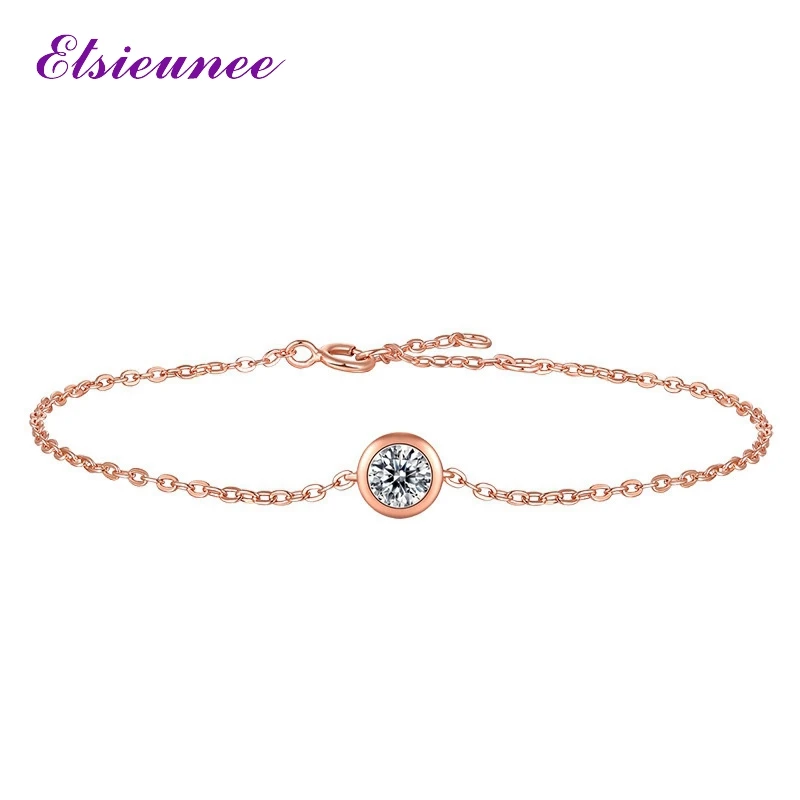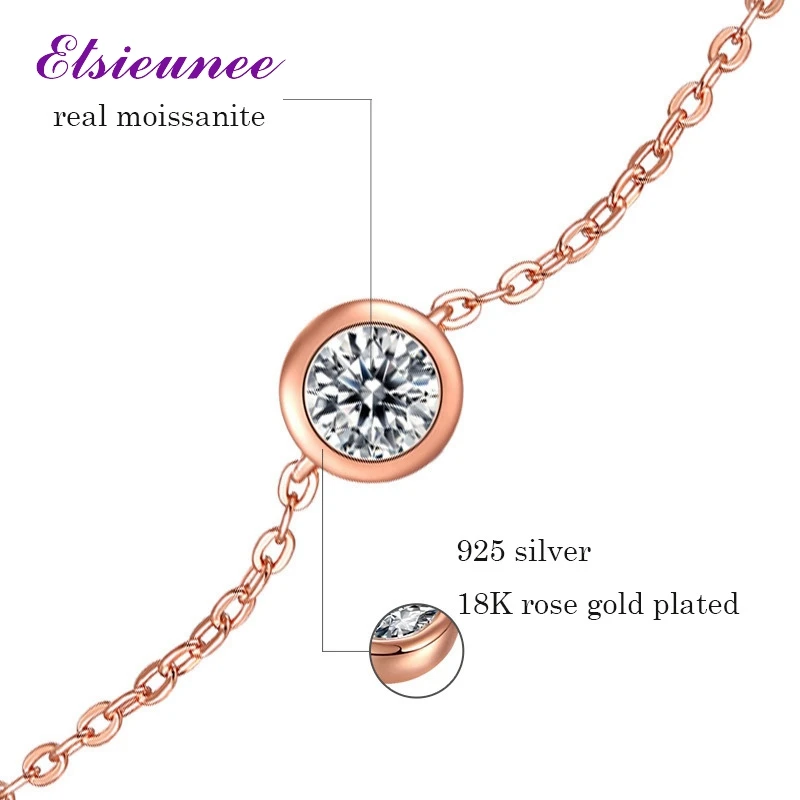 ELSIEUNEE чистого серебра 925 ювелирные изделия браслет 0.5ct D Цвет Муассанит браслеты из нержавеющей стали для девочек розовое золото Цвет свадебные ювелирные украшения