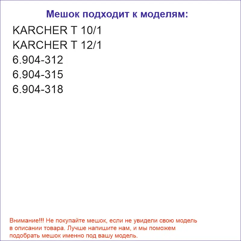 Мешок для пылесоса Karcher T 101, Karcher T 121, 6.904-312, 6.904-315, 6.904-318, пылесборник многоразовый, класс пыли L, 1 шт