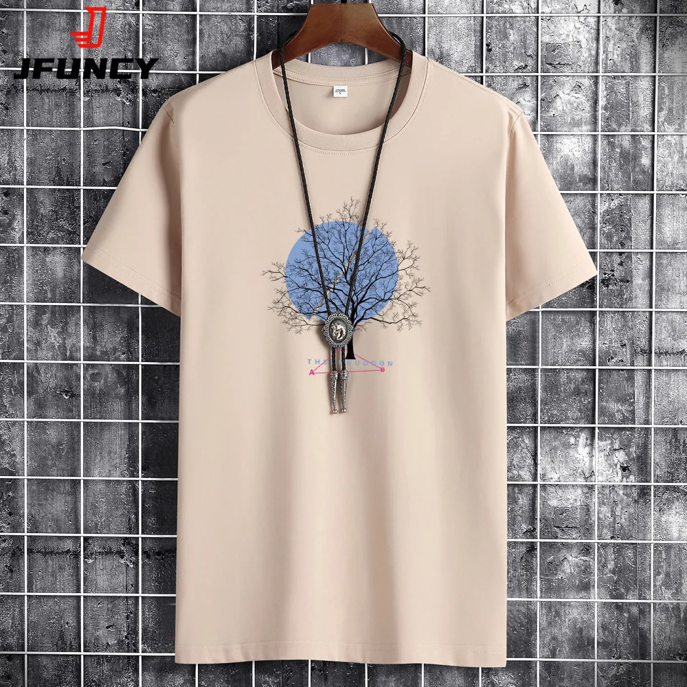 JFUNCY летняя Мужская хлопковая футболка футболки для мужчин Повседневная футболка 2021 новые модные футболки S-6XL большого размера с коротким рукавом Свободные топы