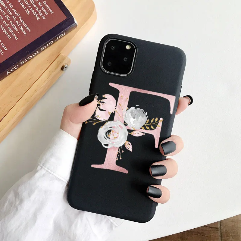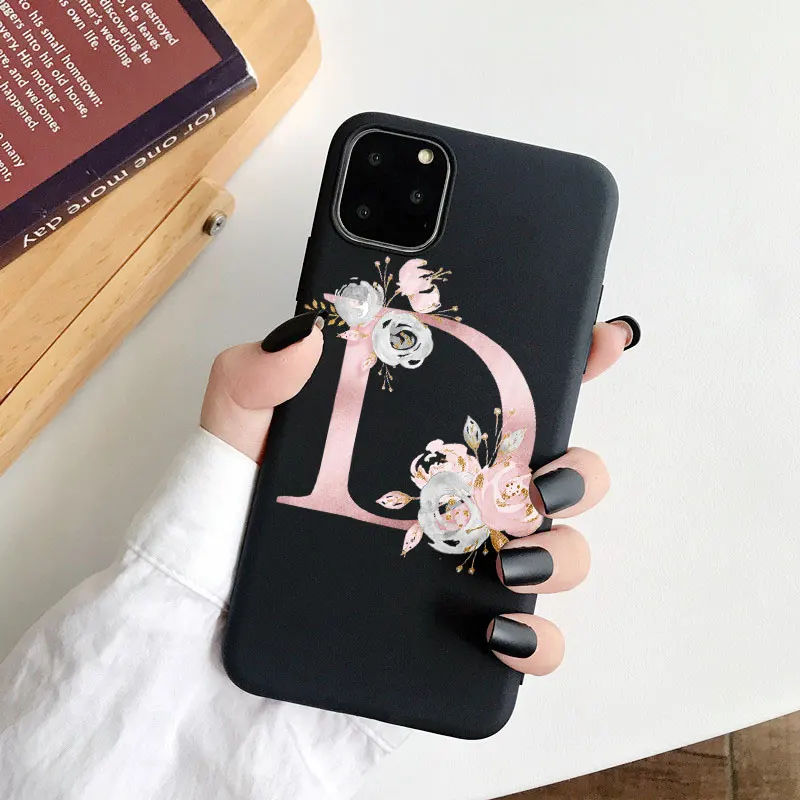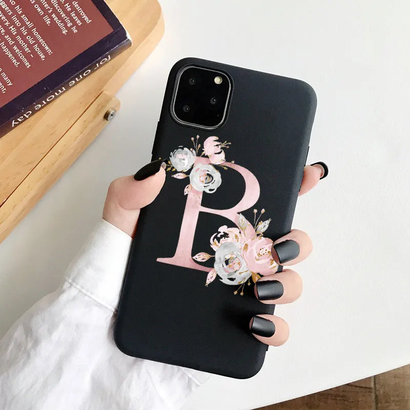 Силиконовые чехлы для телефонов Huawei P30 P20 Lite Pro P40 Lite E P Smart 2021 с буквами алфавита, цветами, Черная задняя крышка из ТПУ