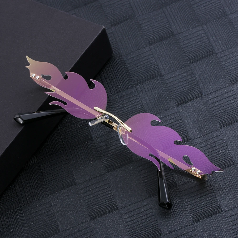 1 шт., 2021, Ретро стиль, огненные солнечные очки, для женщин и мужчин, без оправы, волнистые солнцезащитные очки UV 400, очки, роскошный бренд, для велоспорта, узкая уличная одежда