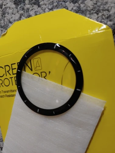 Хорошая идея-пленка для экрана часов, включая безель. К сожалению, пленка На изогнутом экране часов оставляет «воздушные пятна» между ними, что на самом деле является разрушительным. Обе пленки приклеиваются-снимаются-выкидываются-забываются...
