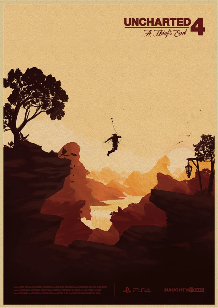 Постер из крафт-бумаги Uncharted, Классическая игра, для бара, кафе...