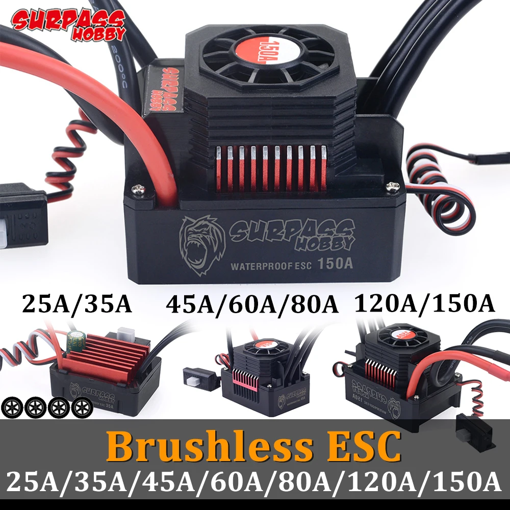 Водонепроницаемый Бесщеточный Регулятор Скорости SURPASS HOBBY, ESC 35A, 45A, 60A, 80A, 120A, 150A для радиоуправляемых машинок, багги-грузовиков 18, 110, 112, 114, 118