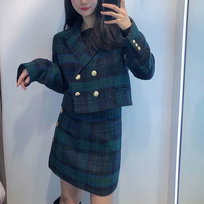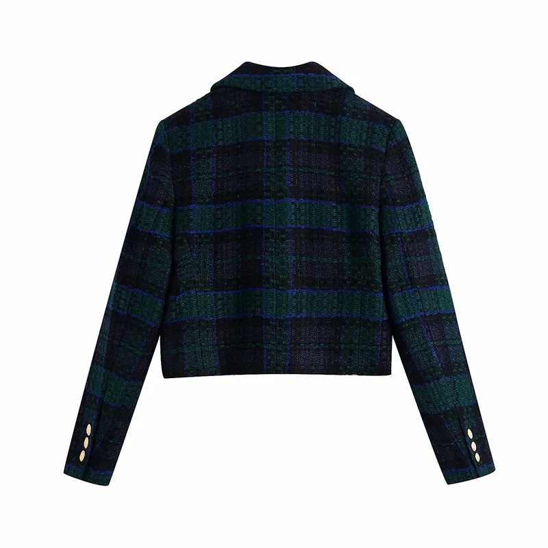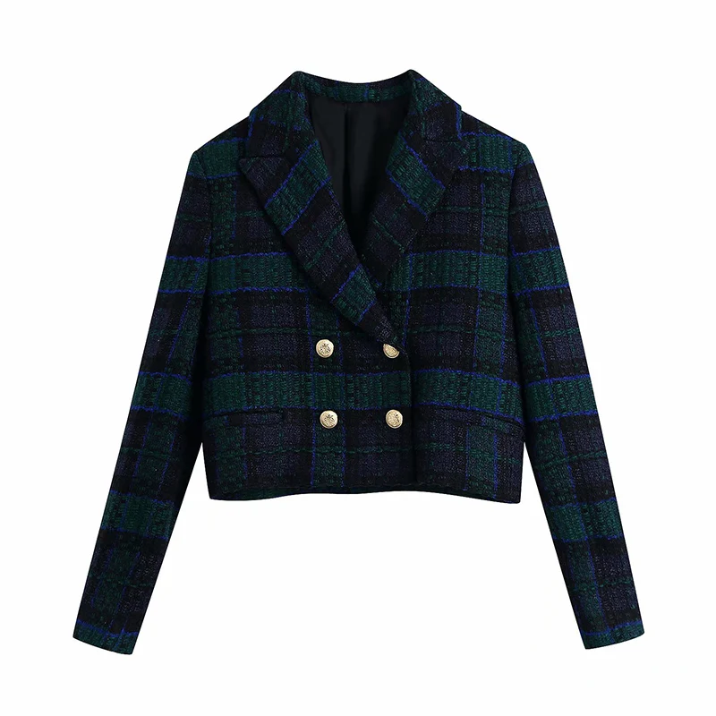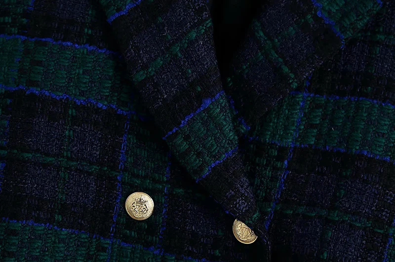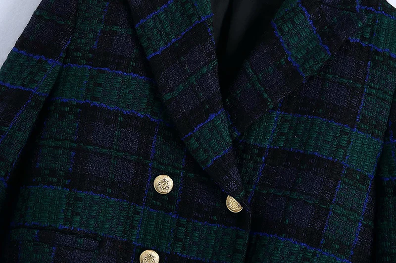Женский твидовый пиджак MXTIN, винтажный двубортный пиджак в клетку, модный офисный короткий Блейзер с отворотным воротником и длинным рукавом, 2021
