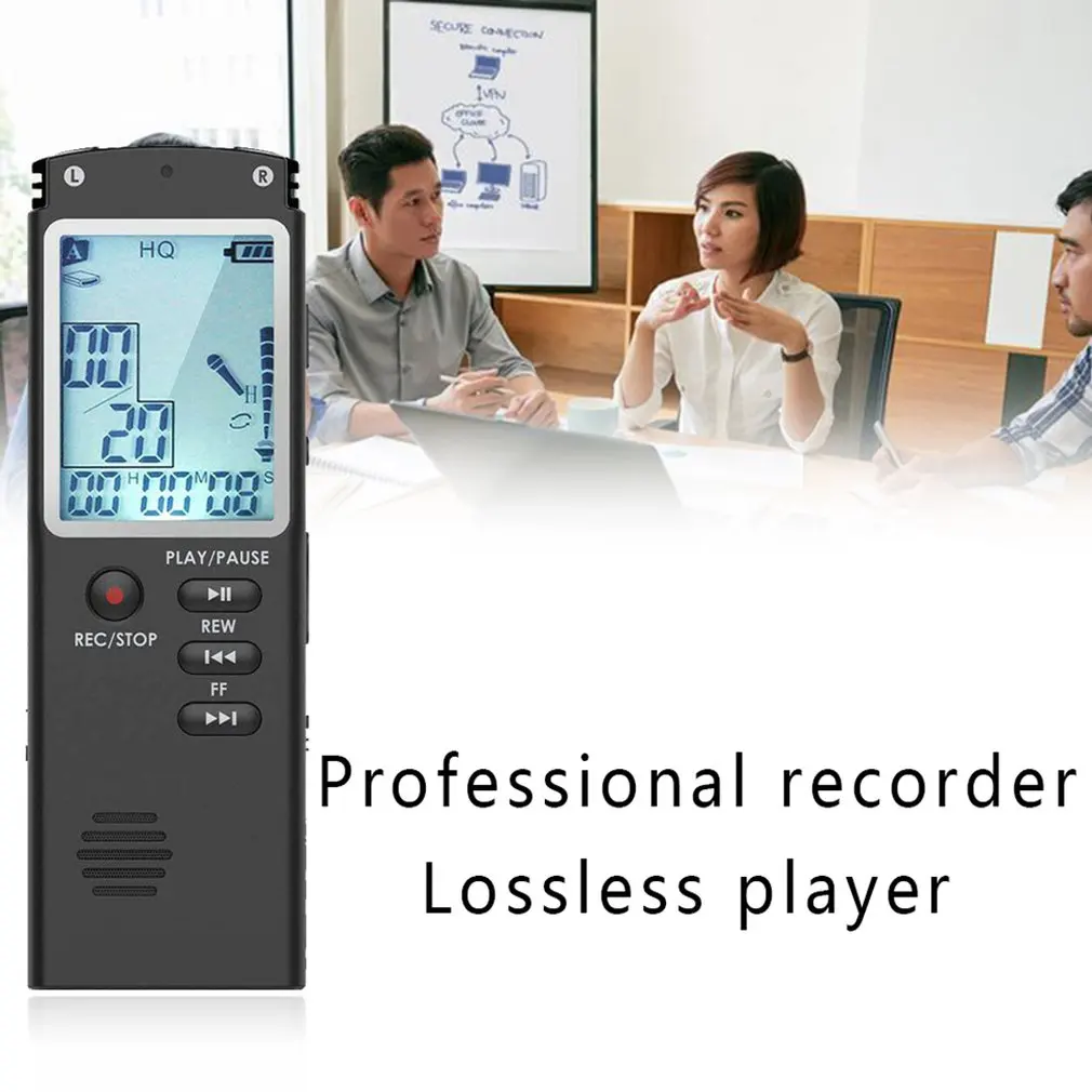 Особенности:Функция записи одной кнопкой, просто нажмите REC, чтобы начать запись.Высокое качество MP3, WAV формат записи с емкостной аудиозаписью для более четкого звука.Поддержка записи телефона, функция повтора, автоматическое сохранение файлов с низким напряжением, функцией часов и внешним воспроизведением голосовых динамиков.С голосовым управлением, он будет автоматически записывать при прослушивании звука и пауза в противном случае.Внутренняя полимерная батарея большой емкости поддерживает запись в течение 720 минут.Спецификация:Тип товара: диктофонМатериал: АБС-пластикЦвет: черныйДля хранения Ёмкость: 8 / 16 / 32 ГБПамять: встроенная флэш-памятьМикрофон: всенаправленный конденсатор 360 градусов MICФормат записи: WAV /MP3Дисплей: ЖК-экранВремя записи: 720Интерфейс: USB 2,0Расстояние записи: 6-12 мПосылка включает в себя:1x диктофон1x наушники1x USB кабель1x микрофон1x аудио кабель1x телефонный кабель1 телефонная/записывающая распределительная коробка1x Руководство пользователя