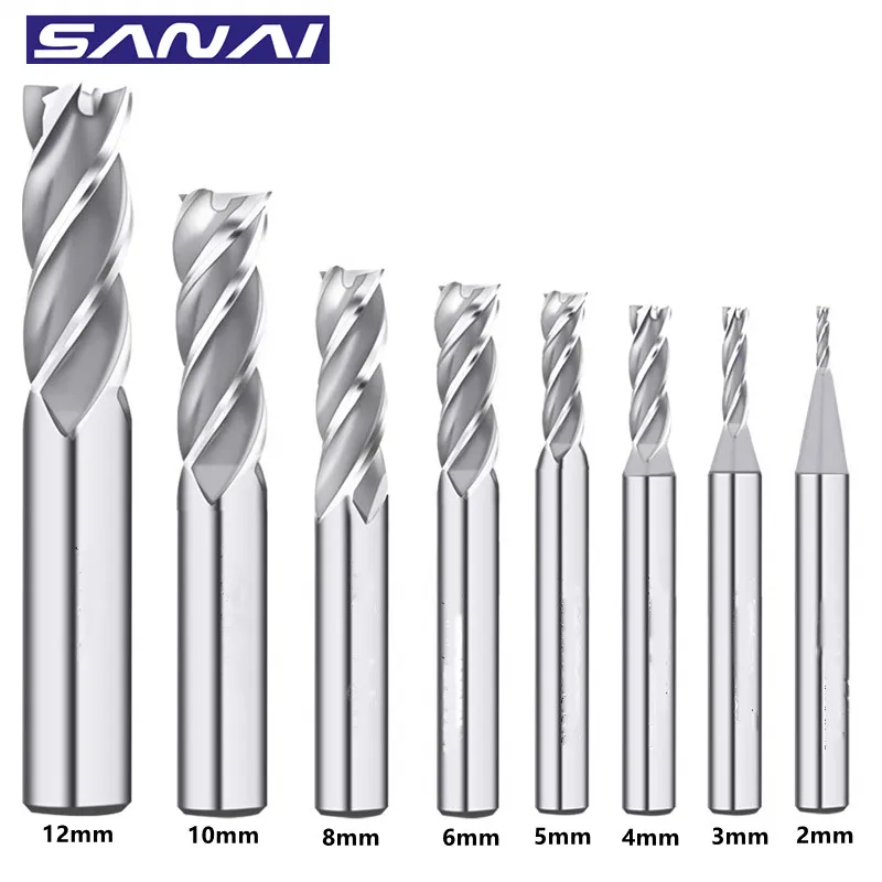 Концевая фреза SANAI 8 шт. из быстрорежущей стали с 4 канавками, металлический резак, квадратные алюминиевые фрезы 2 мм, 3 мм, 4 мм, 5 мм, 6 мм, 8 мм, 10 мм, набор из 8 шт. 12 мм