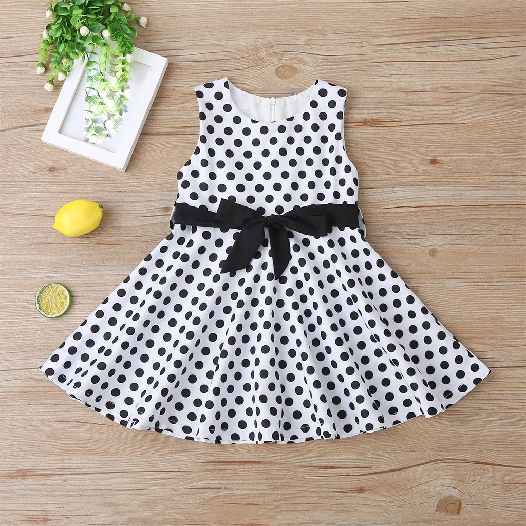 Детская одежда 40 # винтажное платье для девочек платье принцессы в горошек без рукавов с круглым вырезом праздвечерние чные платья в стиле рокабилли