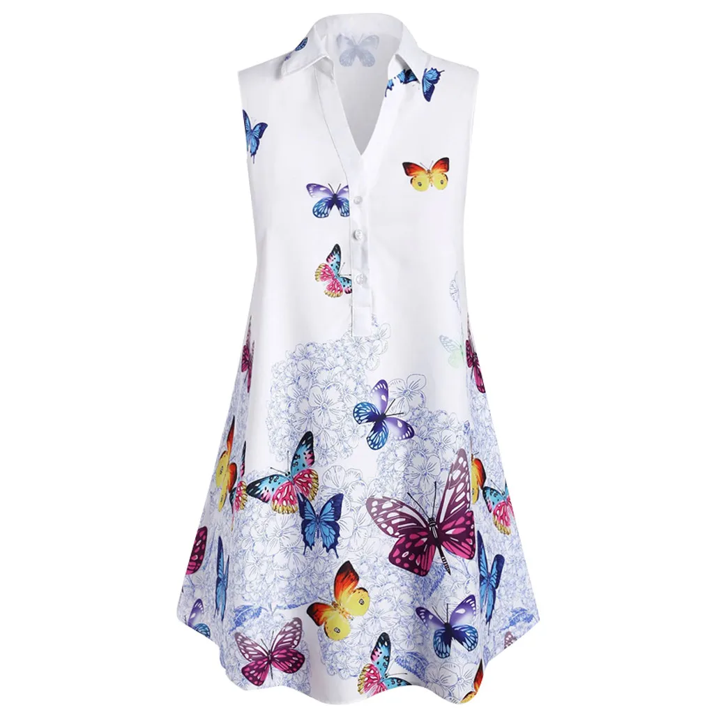 Женская Повседневная Блузка без рукавов размера плюс с принтом бабочки