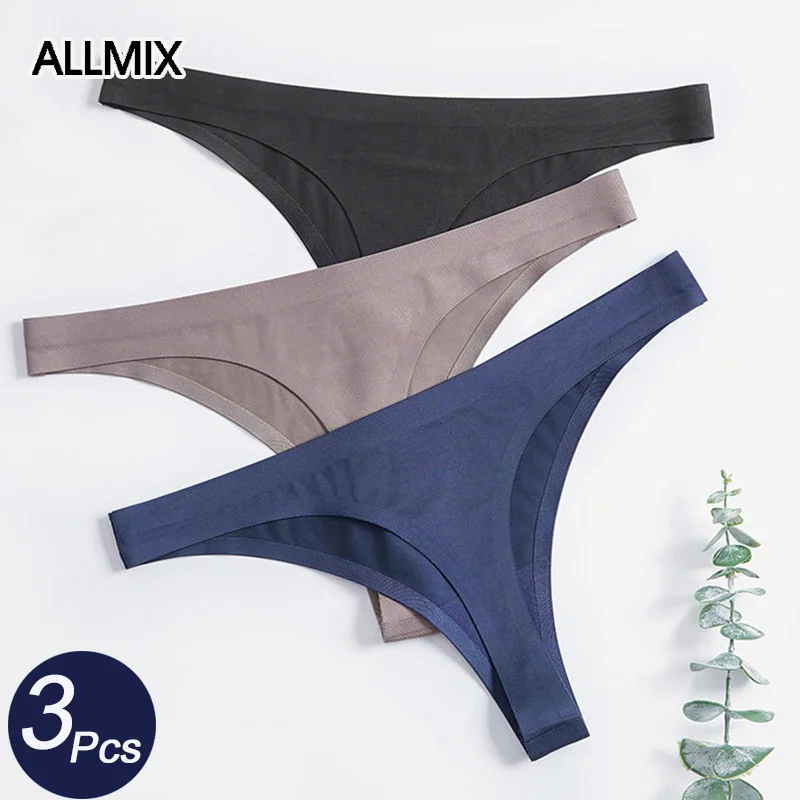 ALLMIX 3 шт.лот, сексуальные женские Шелковые Стринги с заниженной талией, женские модные спортивные стринги, дышащие трусы, женское нижнее белье, летнее бикини
