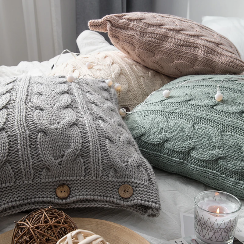 Мягкий хлопковый Плетеный чехол для подушки, винтажный однотонный чехол для подушки цвета слоновой кости, серого, розового цвета, 45 см * 45 см, украшение для дома в скандинавском стиле
