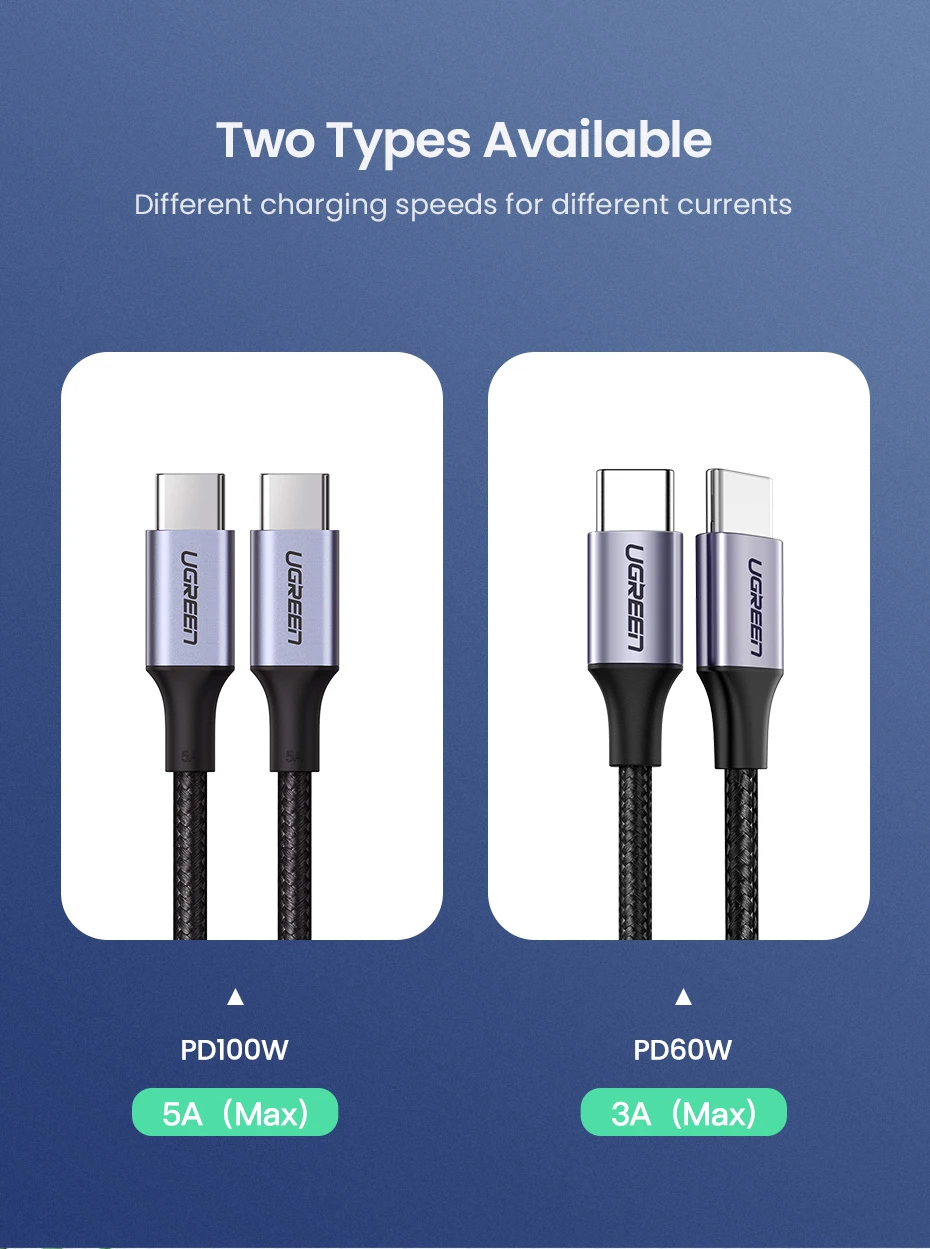 Кабель на вид качественный. Не знаю, как на счет 5ти ампер (маркер 5A на разъеме отсутствует в отличии от картинки), но как DATA кабель показал плохой результат. Скорость передачи данных 40 mb/s. Другой кабель Type-C показал скорость 150-110 mb/s. Кабель для передачи данных совсем не пригоден. По кабелю USB-3 быстрее работает. В общем разочаровался в Ugreen.