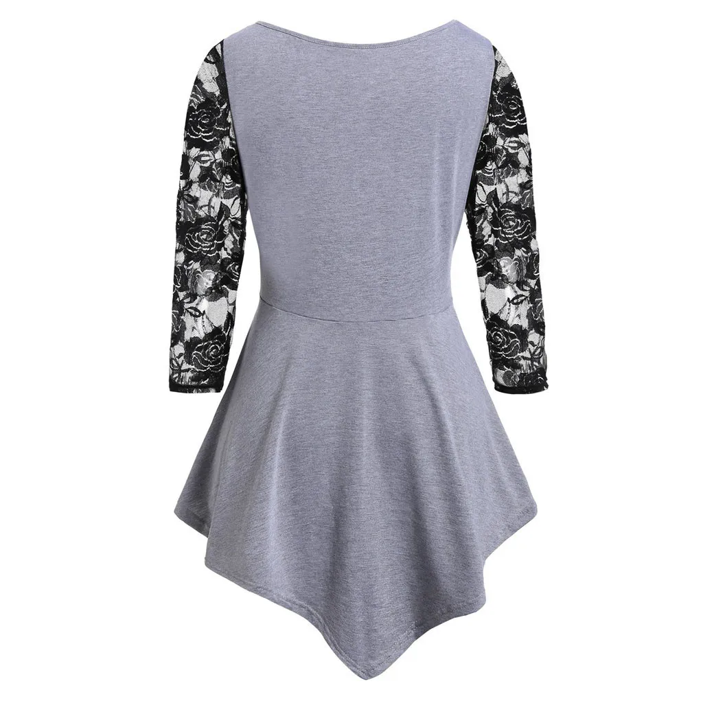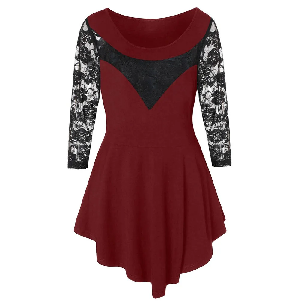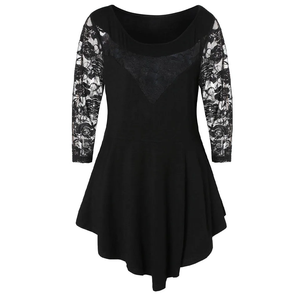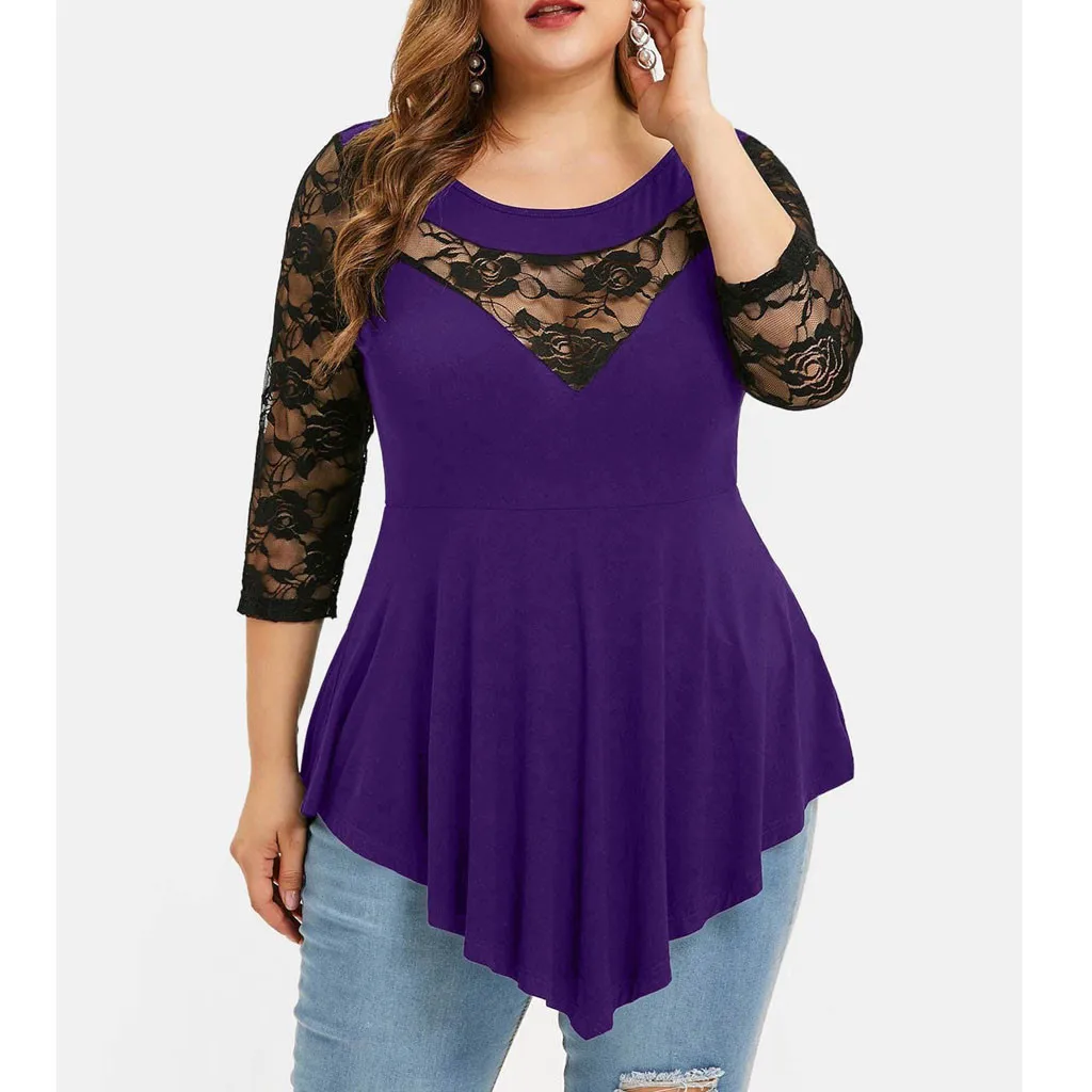 1. Особенности: размера плюс, однотонный, цветочное кружево, круглый вырез, асимметричный, три четверти, топы, блузка, стильный и модный дизайн, простой топ, модная блузка