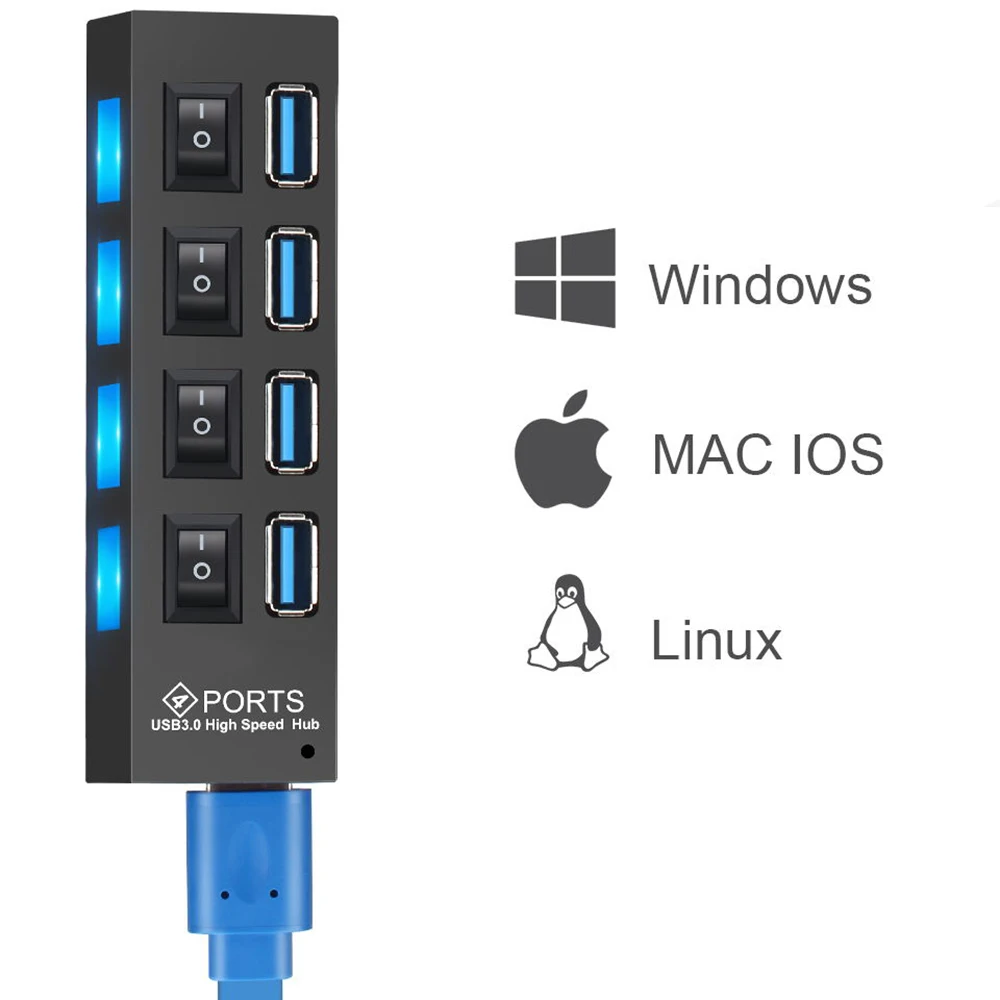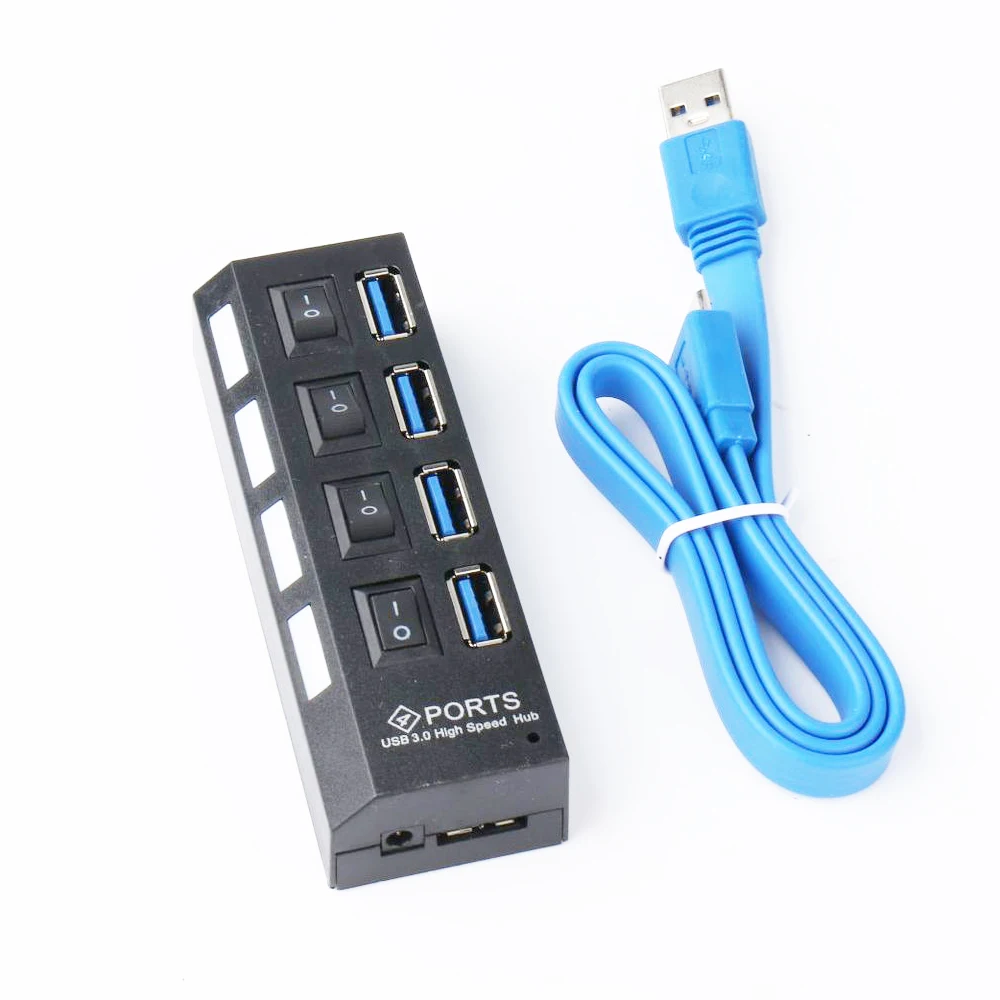 USB-разветвитель 1 в 4, USB 3,0, usb-хаб, 3,0, с переключателем светильник ПК