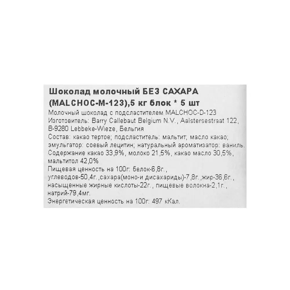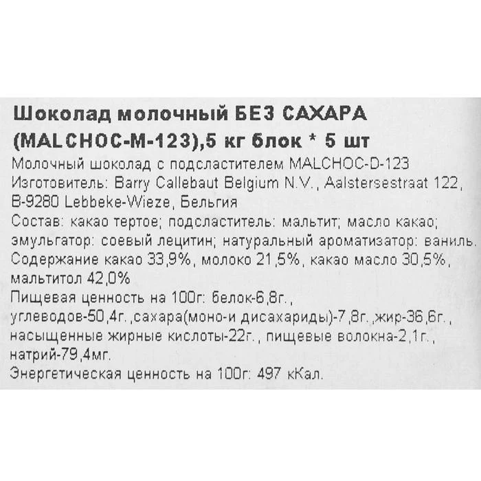 Шоколад молочный "Callebaut" без сахара 5 кг 5986038