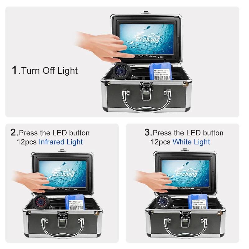 2021 Новейшая 7-дюймовая CD-карта 1200tvl HD Подводная камера для рыбалки Fish Finder 24pcs LED Lights Камера для подводной рыба