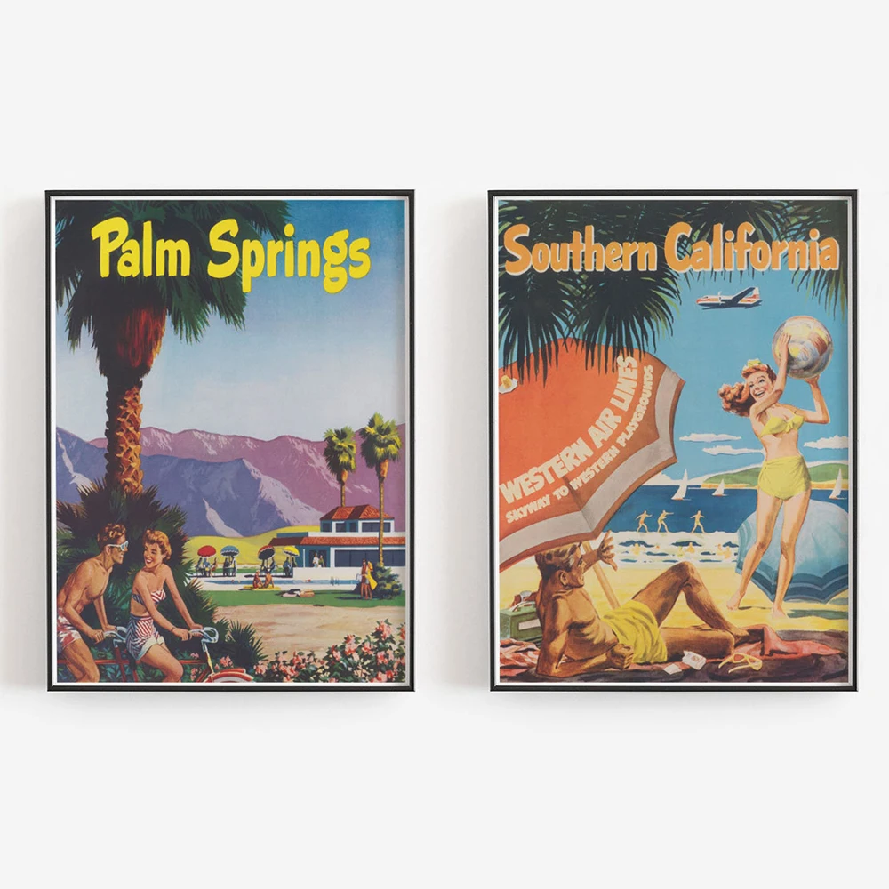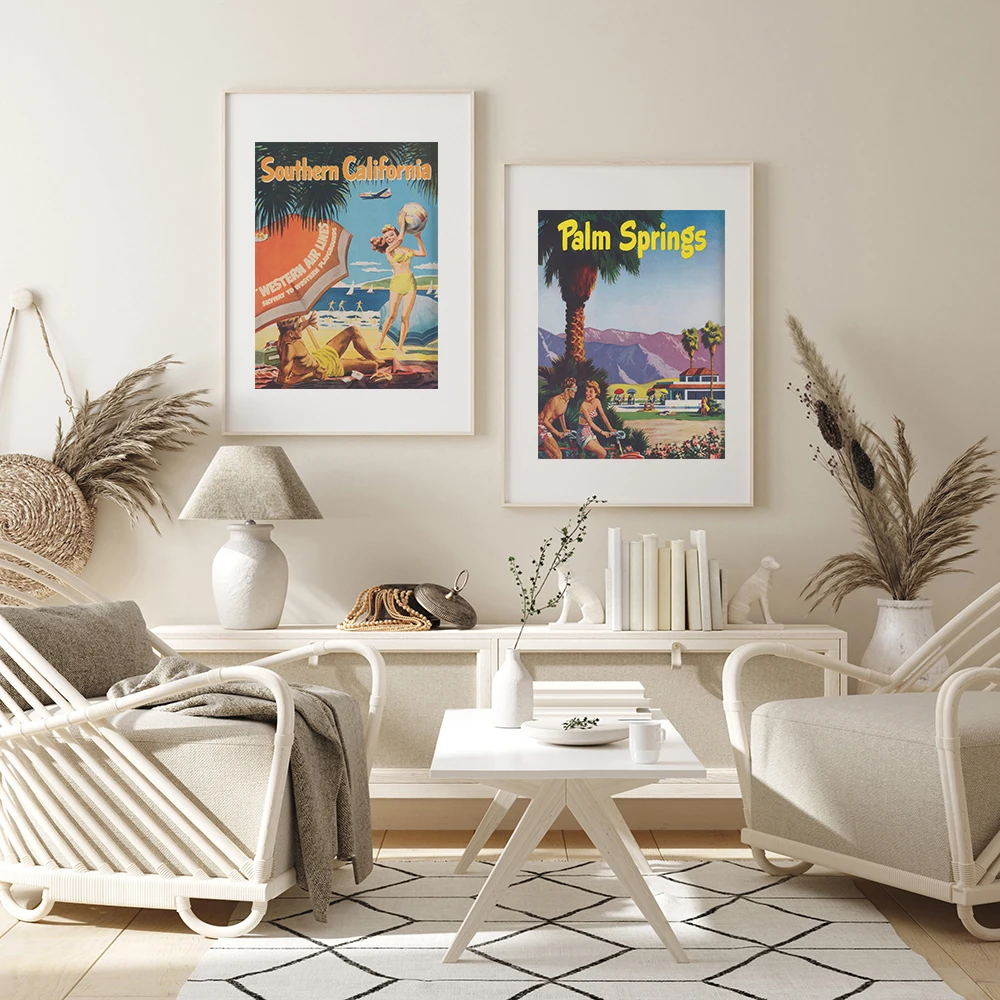 Печатная Картина на холсте с изображением Калифорнийского пляжа, пальмовые источники, плакаты с цитатами, принты в стиле ретро картины для гостиной в отпуске