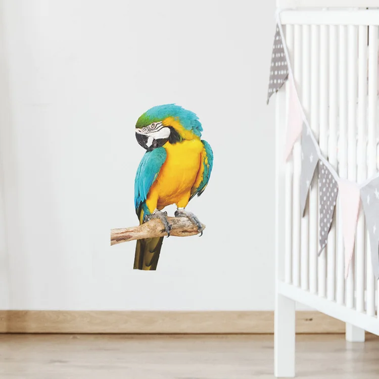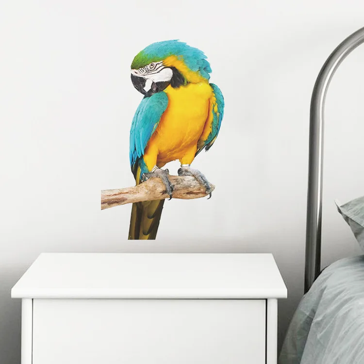 Новый стиль сине-желтый попугай Наклейка на стену спальня гостиная фон домашнее украшение обои животные настенные наклейки на холодильник
