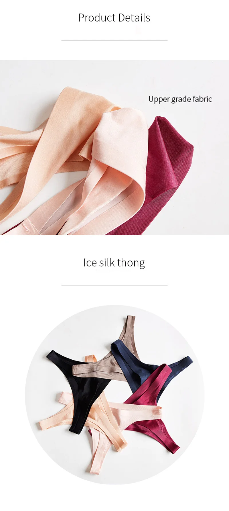 3 шт.Лот, сексуальные женские спортивные трусики, комплект нижнего белья, бесшовные Шелковые Стринги с низкой талией, женские модные стринги, мягкое женское белье, бикини