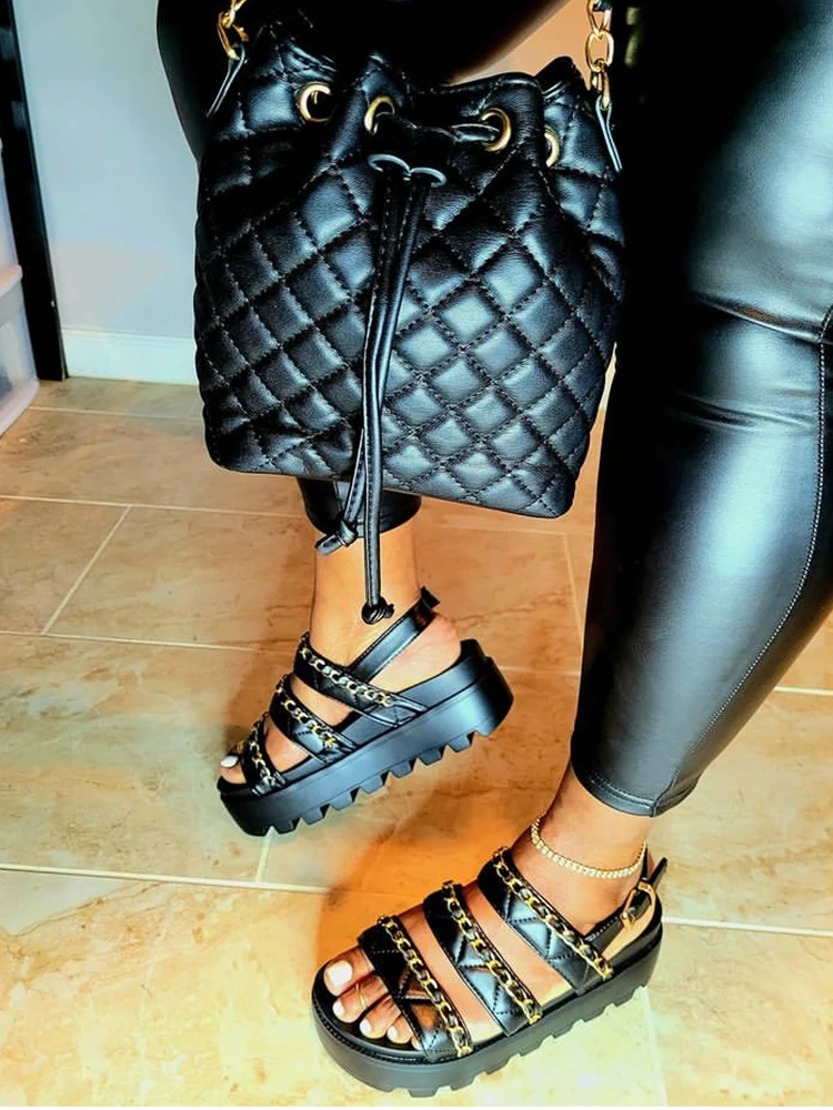 Женские сапоги на молнии с перекрестной шнуровкой, черные сандалии-...
