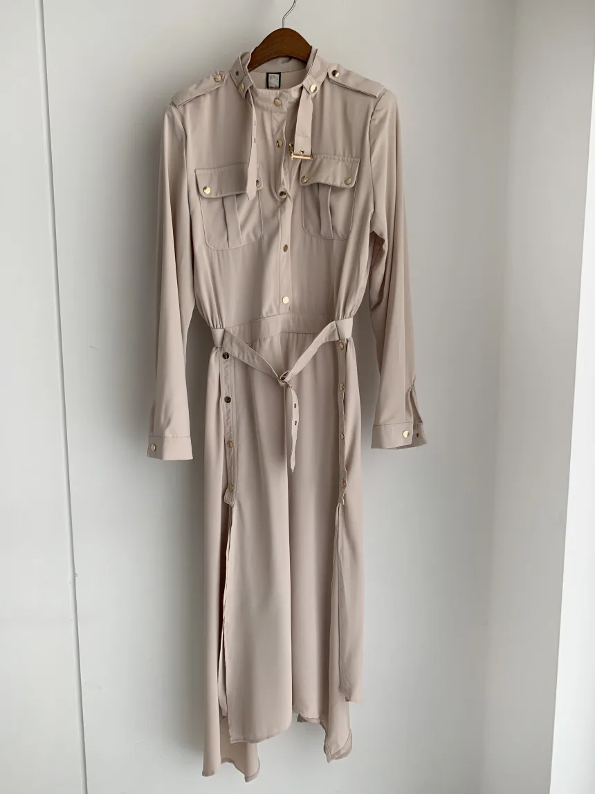 Толщина платья в самый раз, подходит для осени, дизайн на пуговицах выглядит модно, свободный стиль, рекомендую