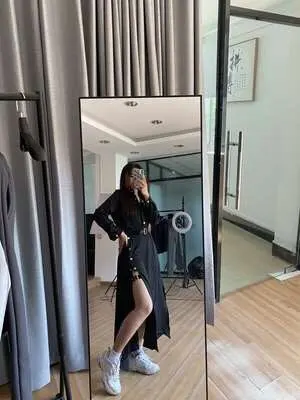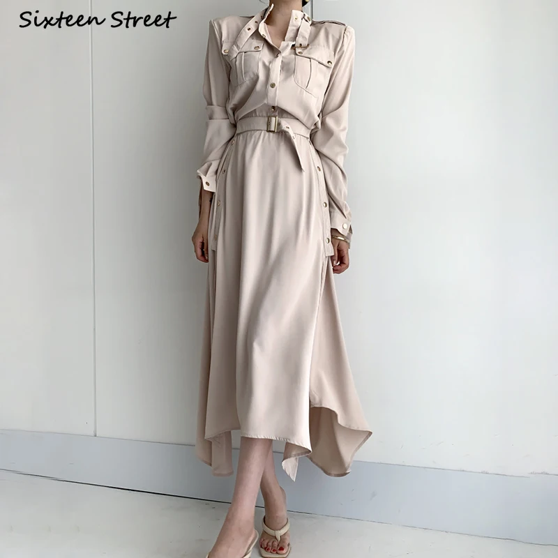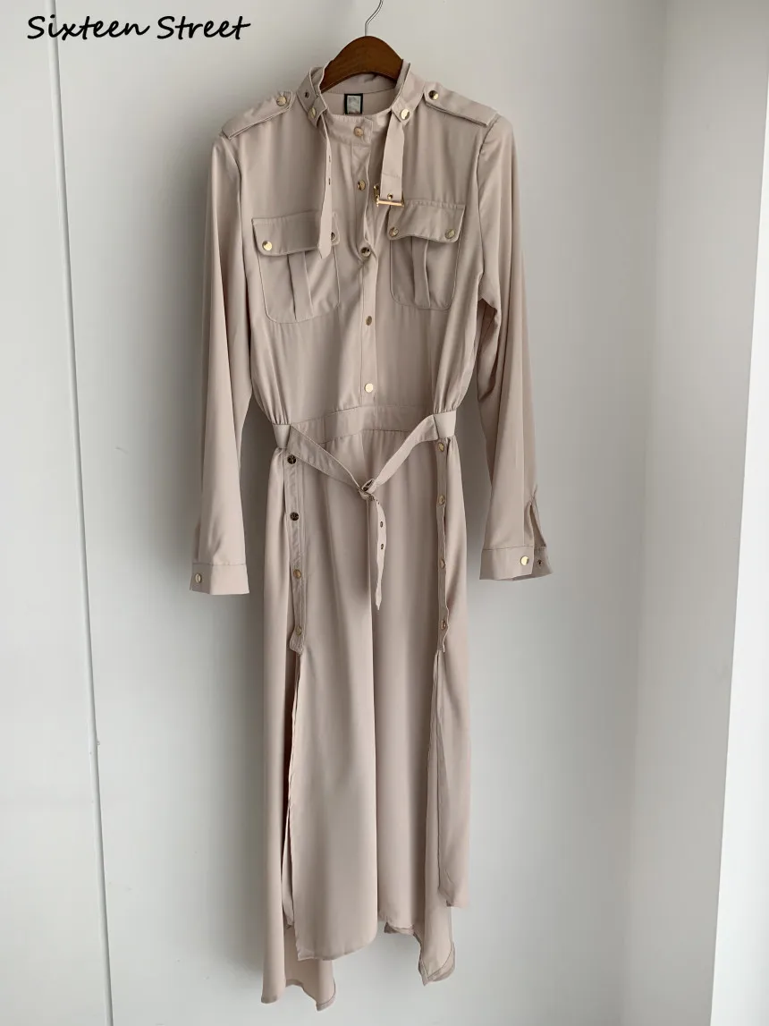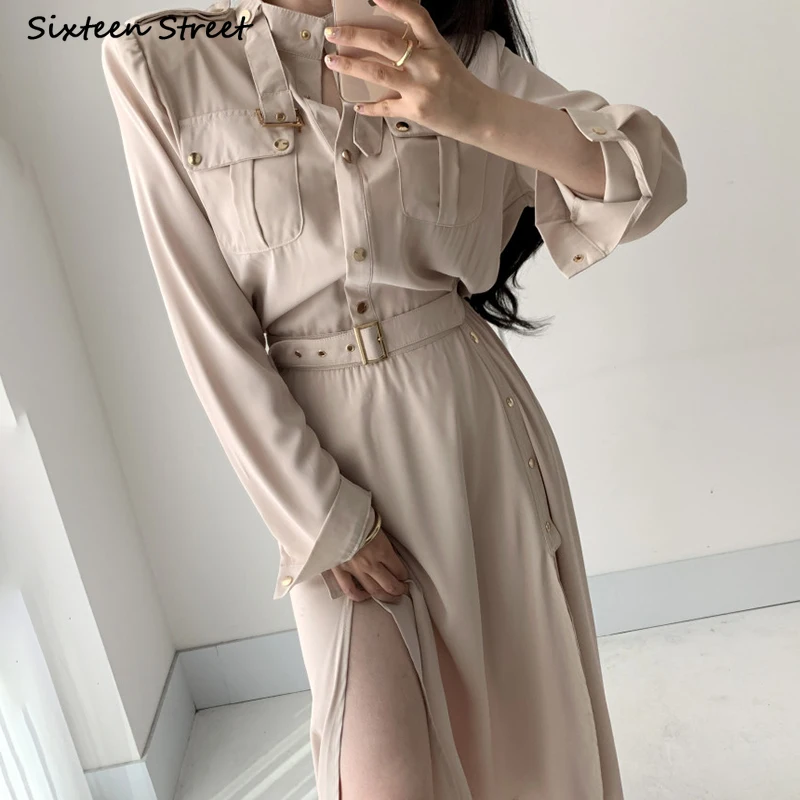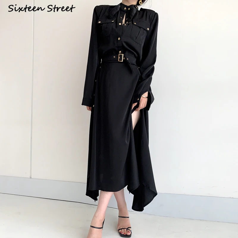 Женское винтажное платье-карго, с поясом, с высокой талией, однобортное, корейское, шикарное, черное, макси