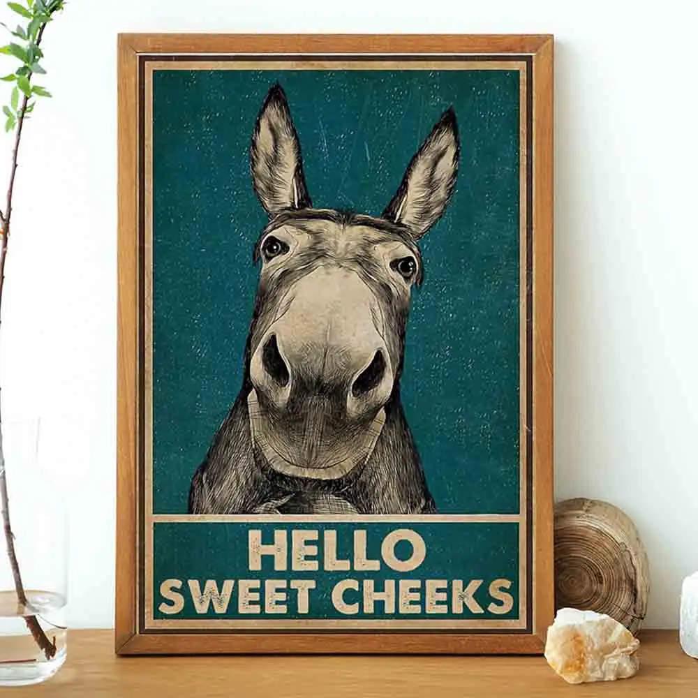 Смешной Ослик Hello очаровательные щеки у сиденье картина с цитатой Винтаж Плакаты и принты настенные картины для Декор в гостиную