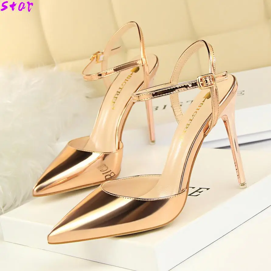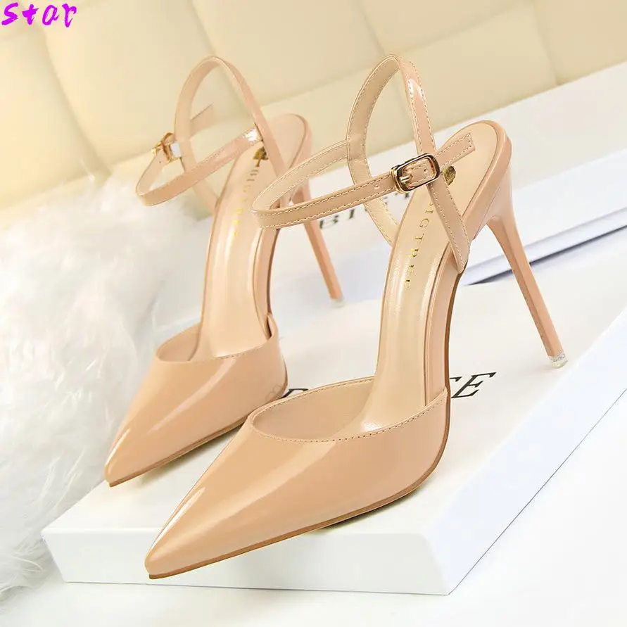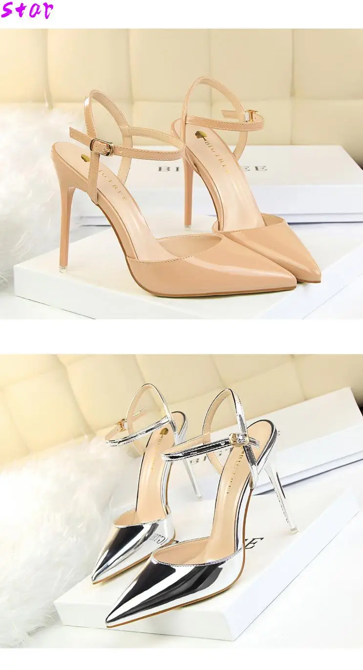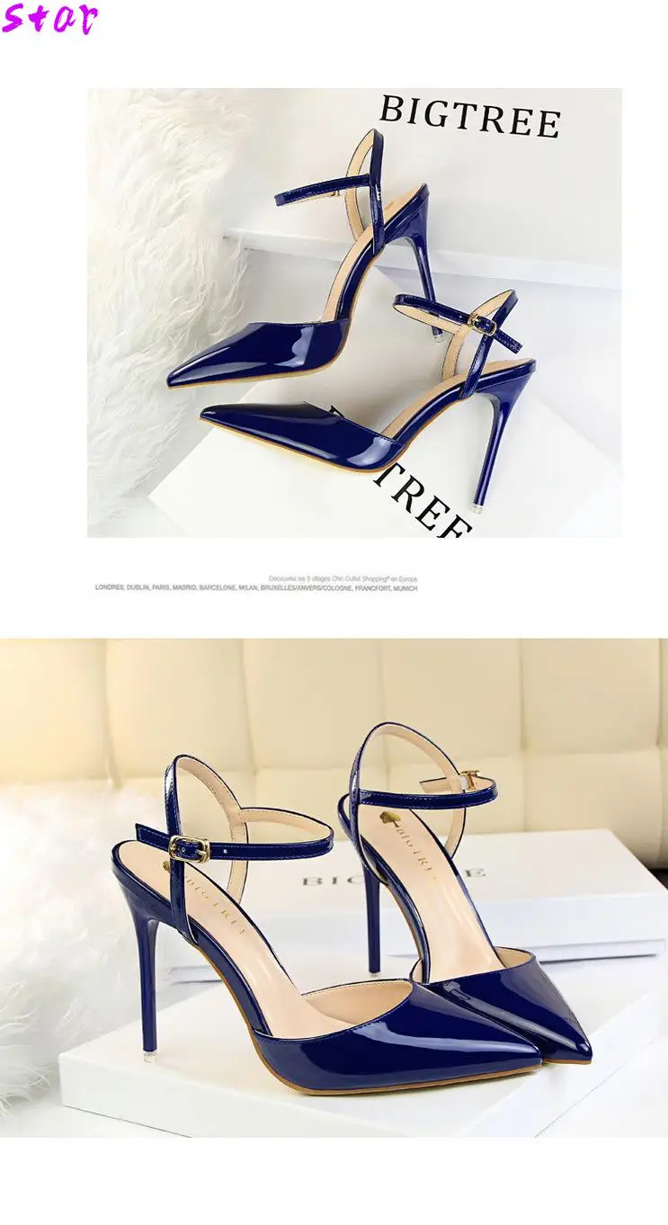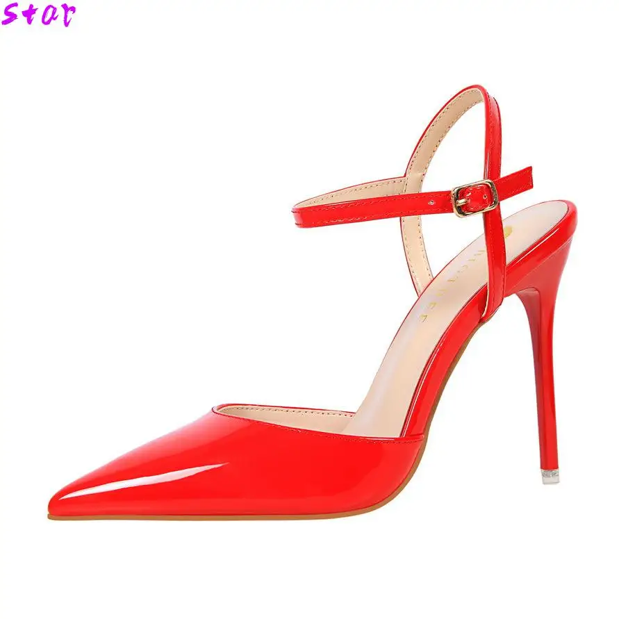 Трансвеститов обувь Zapatos Mujer тонкие женские босоножки на высоком каблуке; Женские свадебные туфли-лодочки; Свадебные Пряжка из лакированной кожи обувь для ночного клуба на каблуке-шпильке