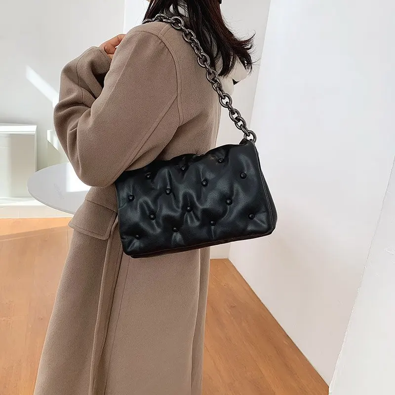 Новые однотонные из искусственной кожи через плечо сумки 2021 дизайнерской цепью сумка через плечо женская сумка на плечо сумка-мессенджер