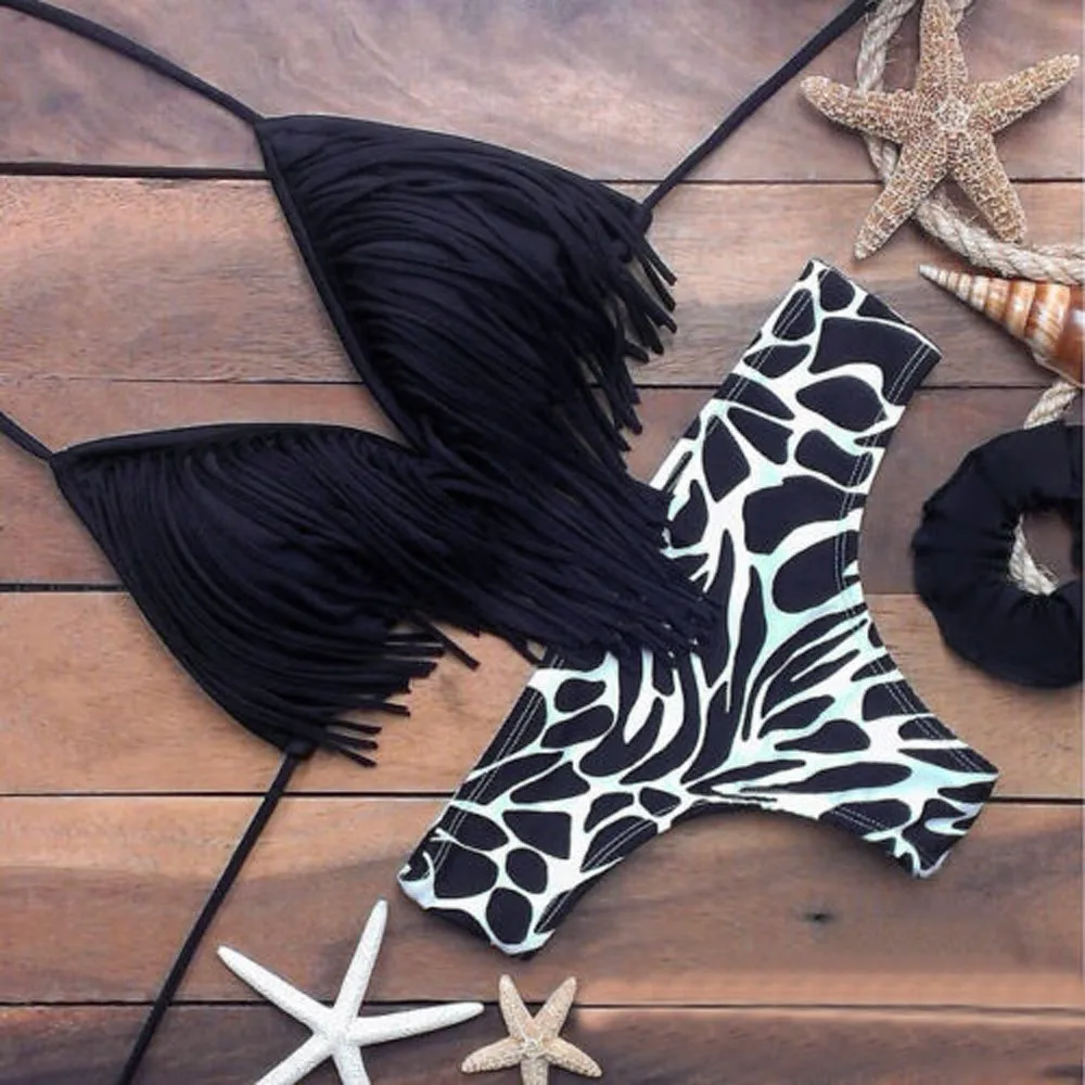 Пуш-апБюстгальтер с подкладкой купальный костюм сексуальный женский комплект бикини с кисточками купальники