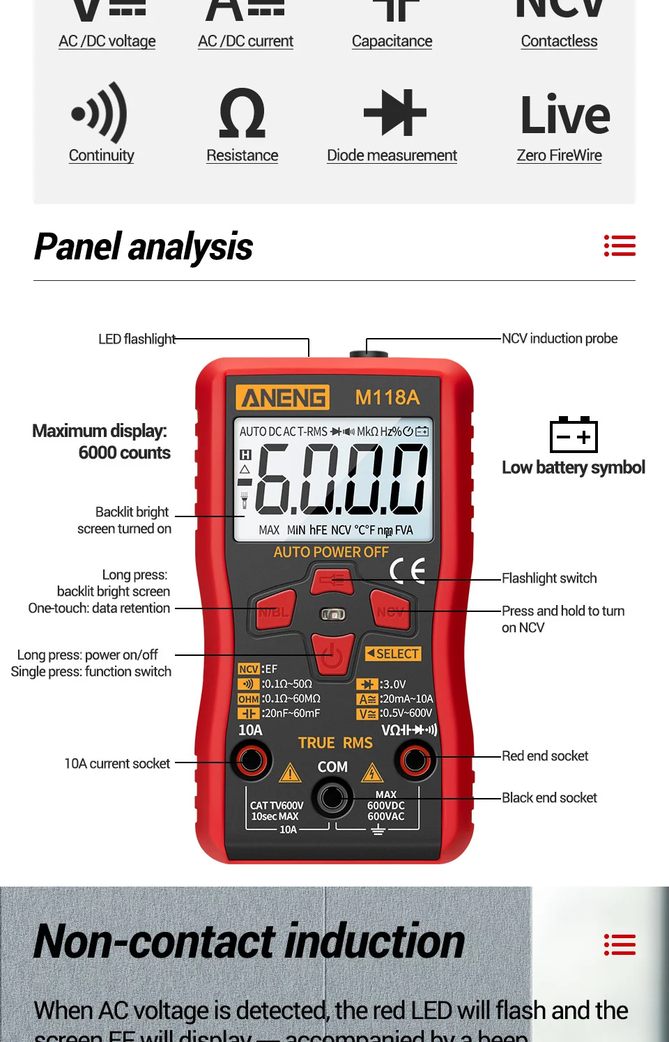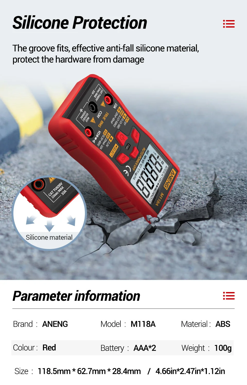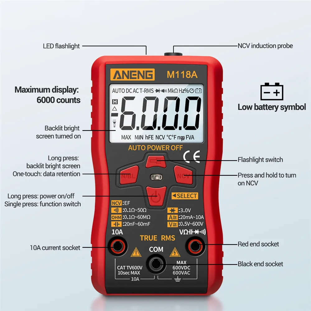 Цифровой мини-мультиметр M118A с автоматическим диапазоном, тестер, амперметр переменногопостоянного тока, измеритель напряжения и тока, данные NCV электрика, 6000 отсчетов, фонарик