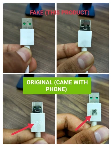 кабель не оригинальный конечно, но быструю зарядку vooc поддерживает. метровый кабель чуть короче оригинала (на пару см) ну и качество видно чуть похуже