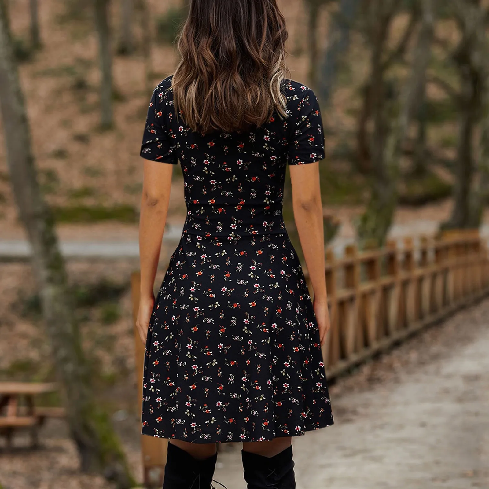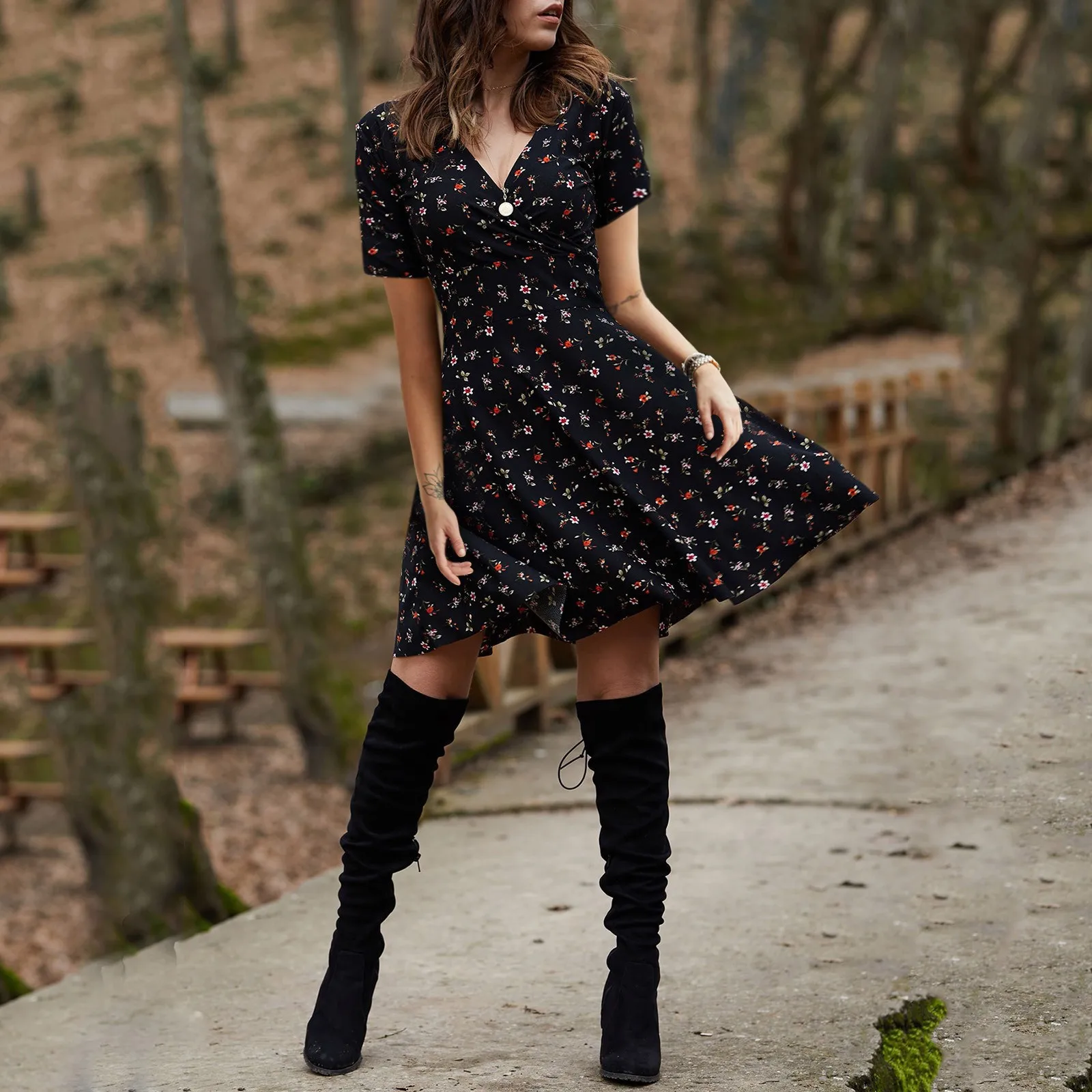 Женское платье с коротким рукавом и V-образным вырезом