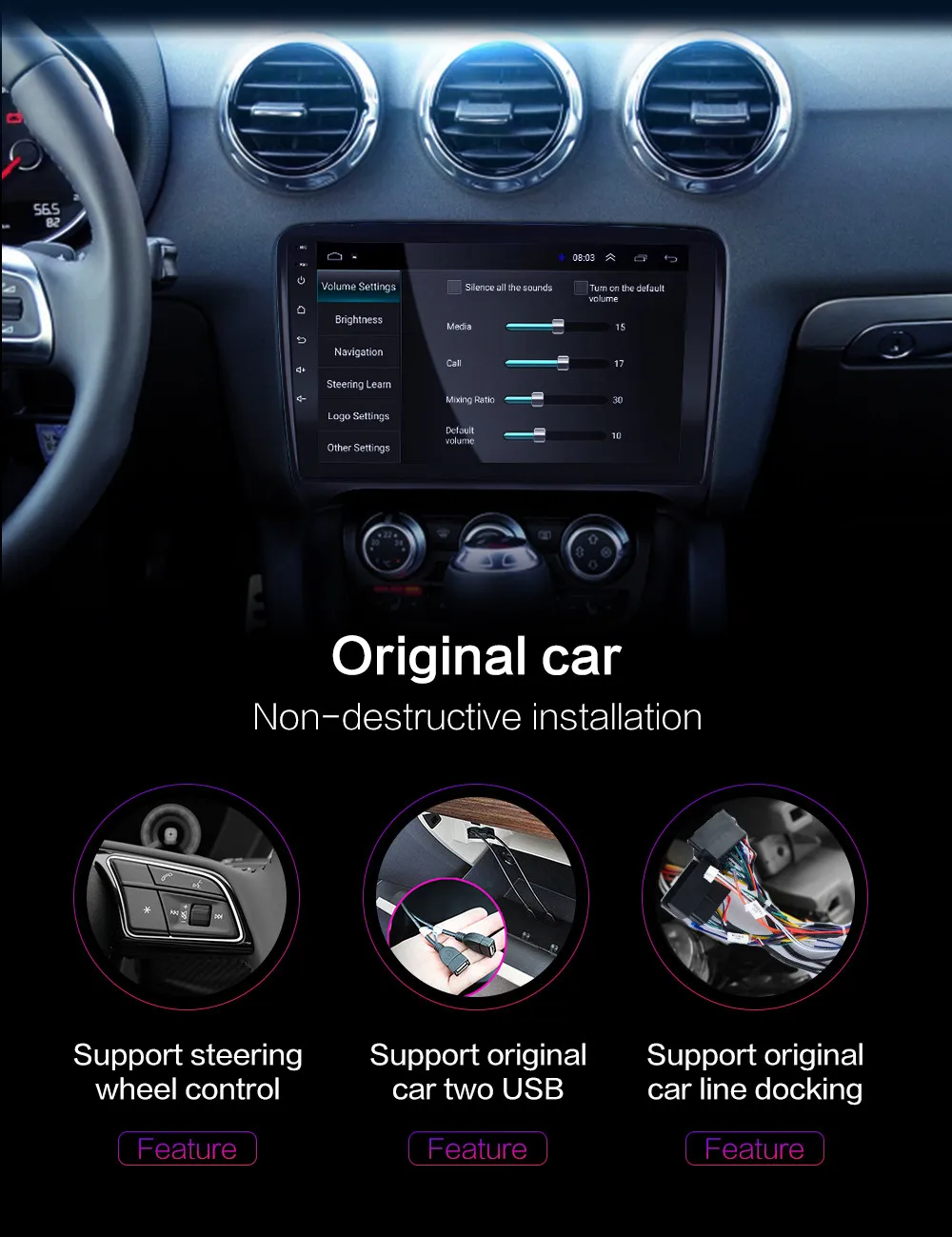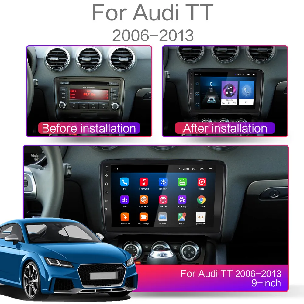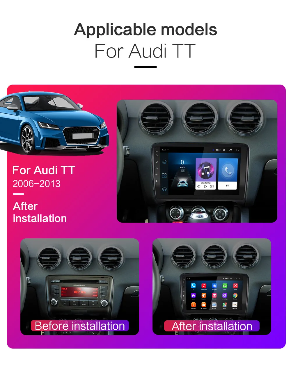 Для Audi TT 2006 2007 2008 2009 2010 2011 2012 2013 2014 1, 4-х ядерный конфигурация включает в себя (Оперативная память + Встроенная память): 1 Гб + 16 ГБ/2 ГБ + 16 ГБ/2G + 32G / 4G-SIM-3560-2G + 32G [дополнительно]; 2, 8-ядерный конфигурация включает в себя (Оперативная память + Встроенная память): 7260L-2G + 32G / 7260L-4G + 64G / 4G-SIM-5760-2G + 32G / 4G-SIM-5760-4G + 64G / 4G-SIM-TS10-4G + 64G/4g-sim-ts6g на выбор + 128 3, 4-х ядерный содержит: версия: Android 8,1; Четырехъядерный процессор MTK8227 / Cortex-A7 Поддержка автомобиля logo5; Sfactory пароль: 8888 Разрешение: HD 2.5D,1024*600; Не поддерживает функцию AM, функцию RDS; Обычная посылка WiFi поддерживает функцию видеовыхода; Версия 3560-4G-SIM-WiFi: версия: Android 6,0; Поддерживает DSP; Не поддерживает функцию видеовыхода; 4, 8-Core содержат: версия: Android 9,0 или Android 10; Восемь ядер: CPU Quad core и GPU Quad core соответственно; Поддержка автомобиля logo5;Sfactory пароль: 8888; Разрешение: HD 2.5D,1024*600; Версия 7260L-WIFI: поддерживает DSP, функции; Не поддерживает видеовыход; 4G-SIM-5760-WIFI и 4G-SIM-TS10-WIFI версия: поддерживает функции DSP, Carplay, сплит-экрана; Не поддерживает видеовыход; 5. Операционная система Android может установить приложение Google Play store Skype Facebook youTube Twitter и т. Д.; 6. Поддержка: радиостанция, Bluetooth Вызов, Bluetooth музыка, управление рулевым колесом, встроенный WiFi, MP3, видео музыка (MPG, AVI), навигация, видеовыход, зеркальная связь, USB 4G LTE WIFI ключ и другие функции; Поддержка OBD (опционально) Поддержка DAB + (опционально)