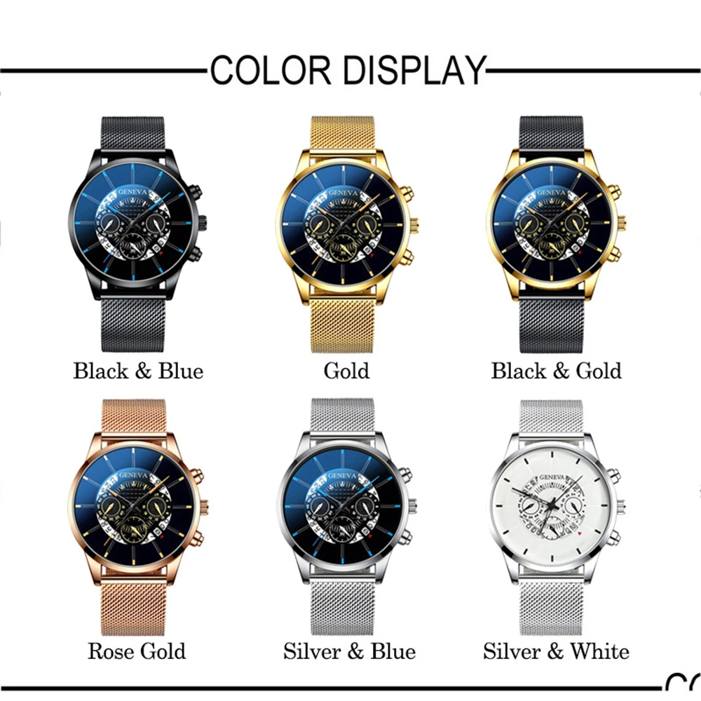 Часы мужские, наручные, с календарем и стальным сетчатым ремешком, ...