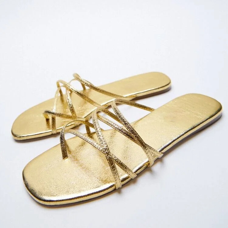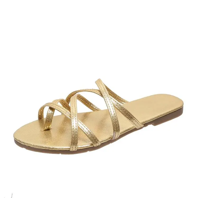 Новинка 2021, стильная женская обувь, модные сандалии на плоской подошве с золотыми ремешками, женские шлепанцы, женская обувь на низком каблуке, Тапочки
