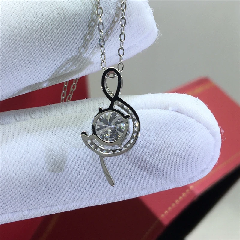 Geoki 925 стерлингового серебра идеальный крой 1 Ct прошел Diamond тесты D Цвет VVS1 Муассанит Музыкальная подвеска ожерелье Роскошные вечерние цепи