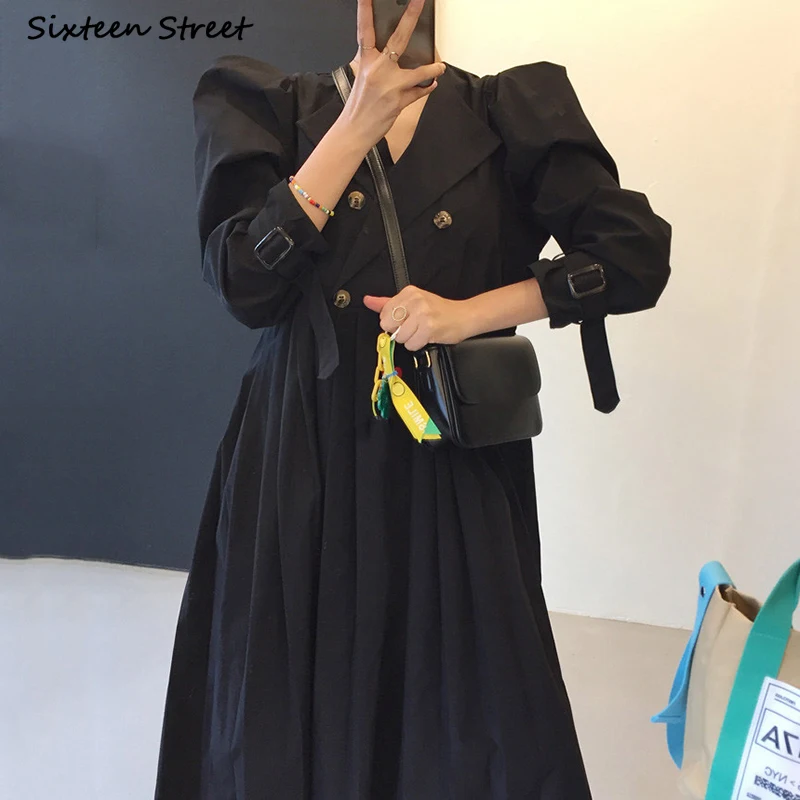 Осеннее вязаное длинное платье, женское однобортное платье с V-обра...